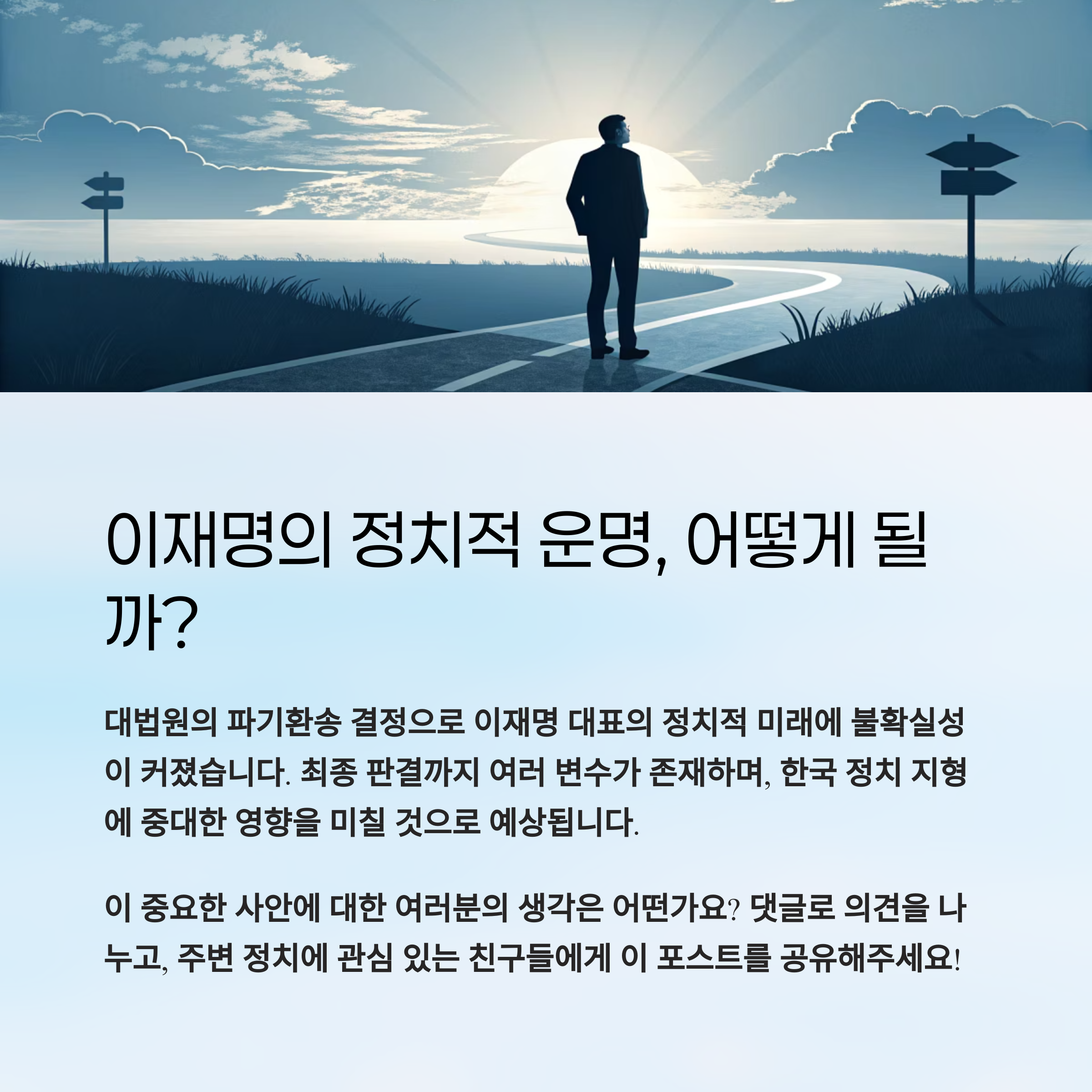 대법원의 파기환송 결정은 이재명 대표 개인은 물론 대한민국 정치 전반에 큰 영향을 미치고 있습니다. 현 시점에서 그는 법적으로 대선 출마가 가능하지만, 유죄가 확정될 경우 피선거권이 제한되는 현실은 정치적 리스크를 끌어안고 있는 상황입니다.