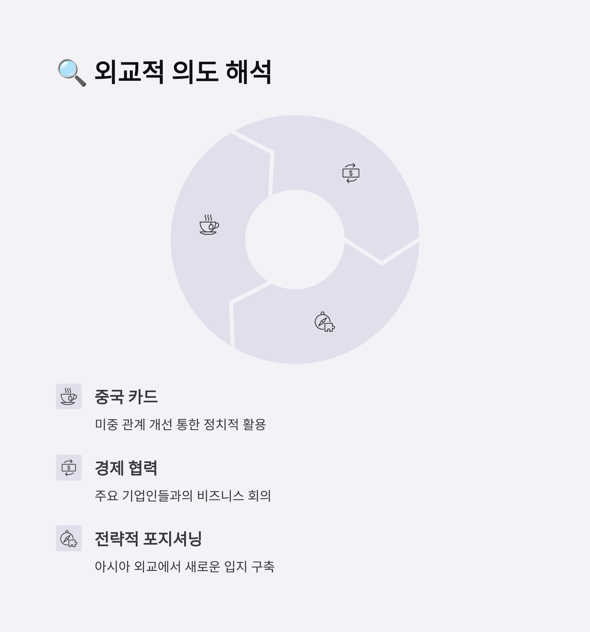 트럼프의 방한은 강력한 중국과의 정치적, 경제적 카드로 활용될 가능성이 있습니다.