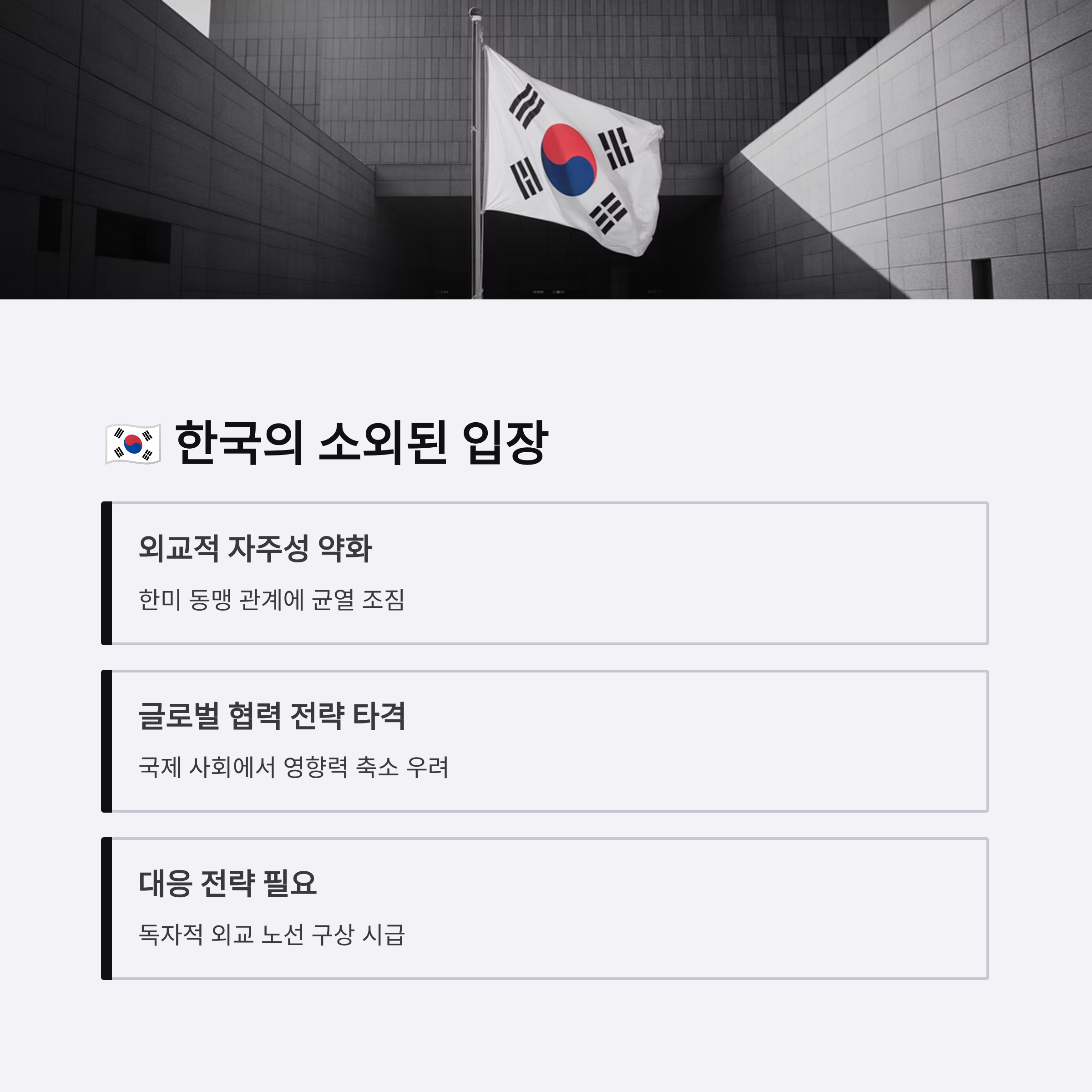 한국의 입장은 상대적으로 소외될 전망이며, 이에 따른 대응 전략이 중요한 시점입니다.