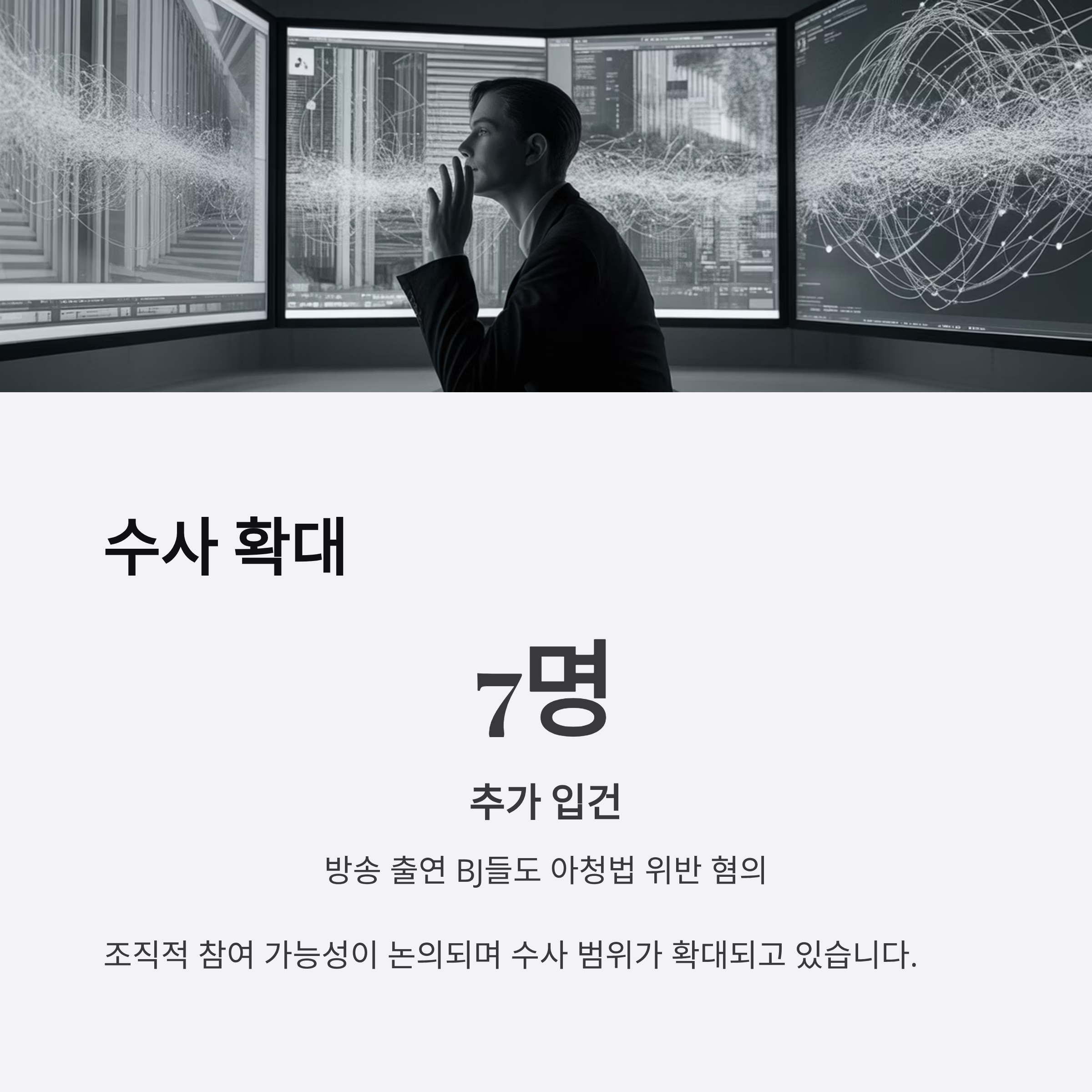 - 관련 아청법 위반으로 수사 확대 (BJ 7명 추가 입건).