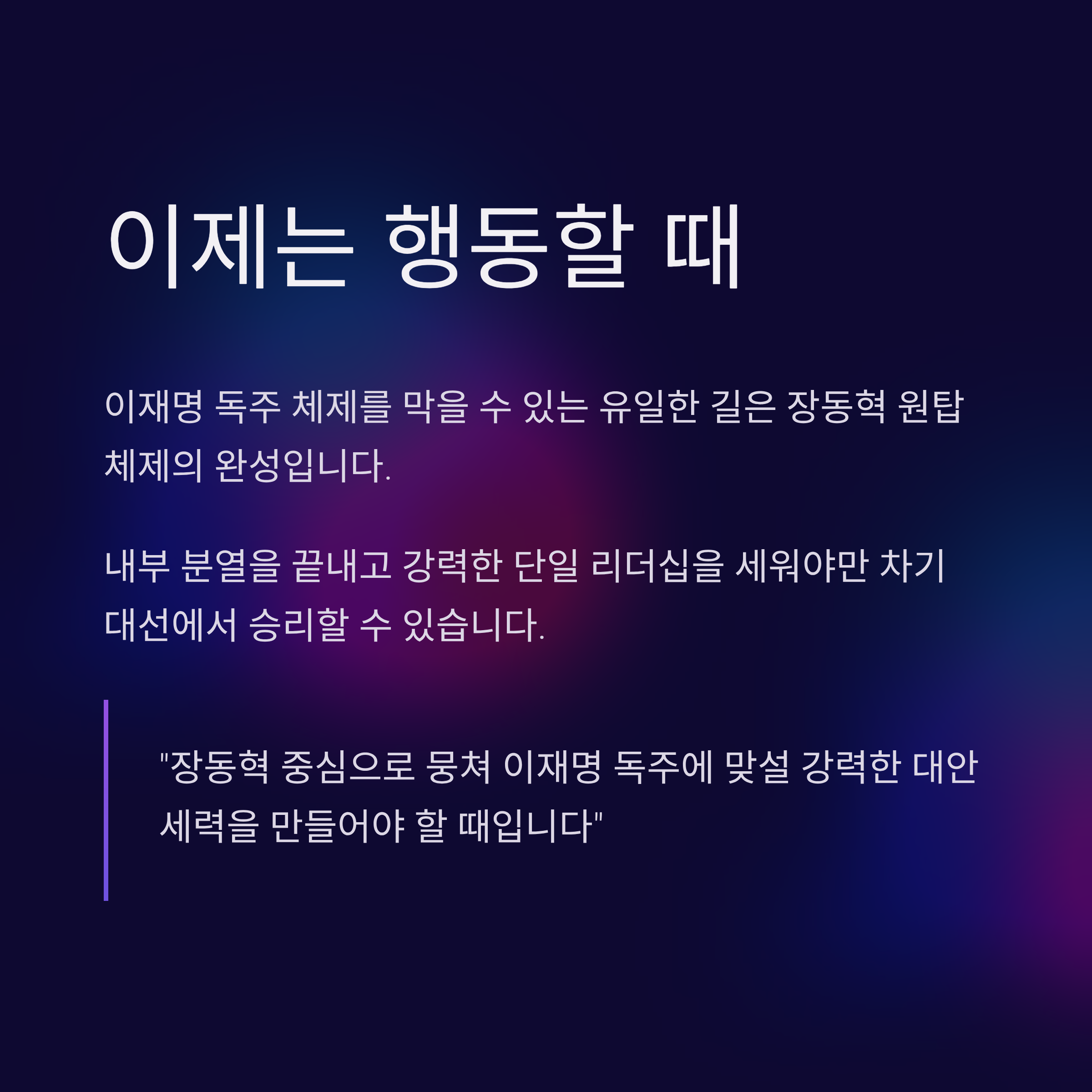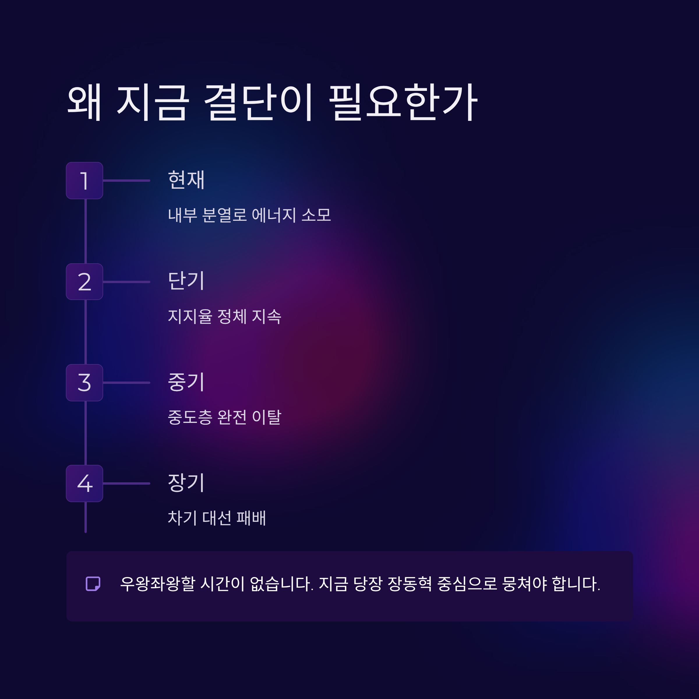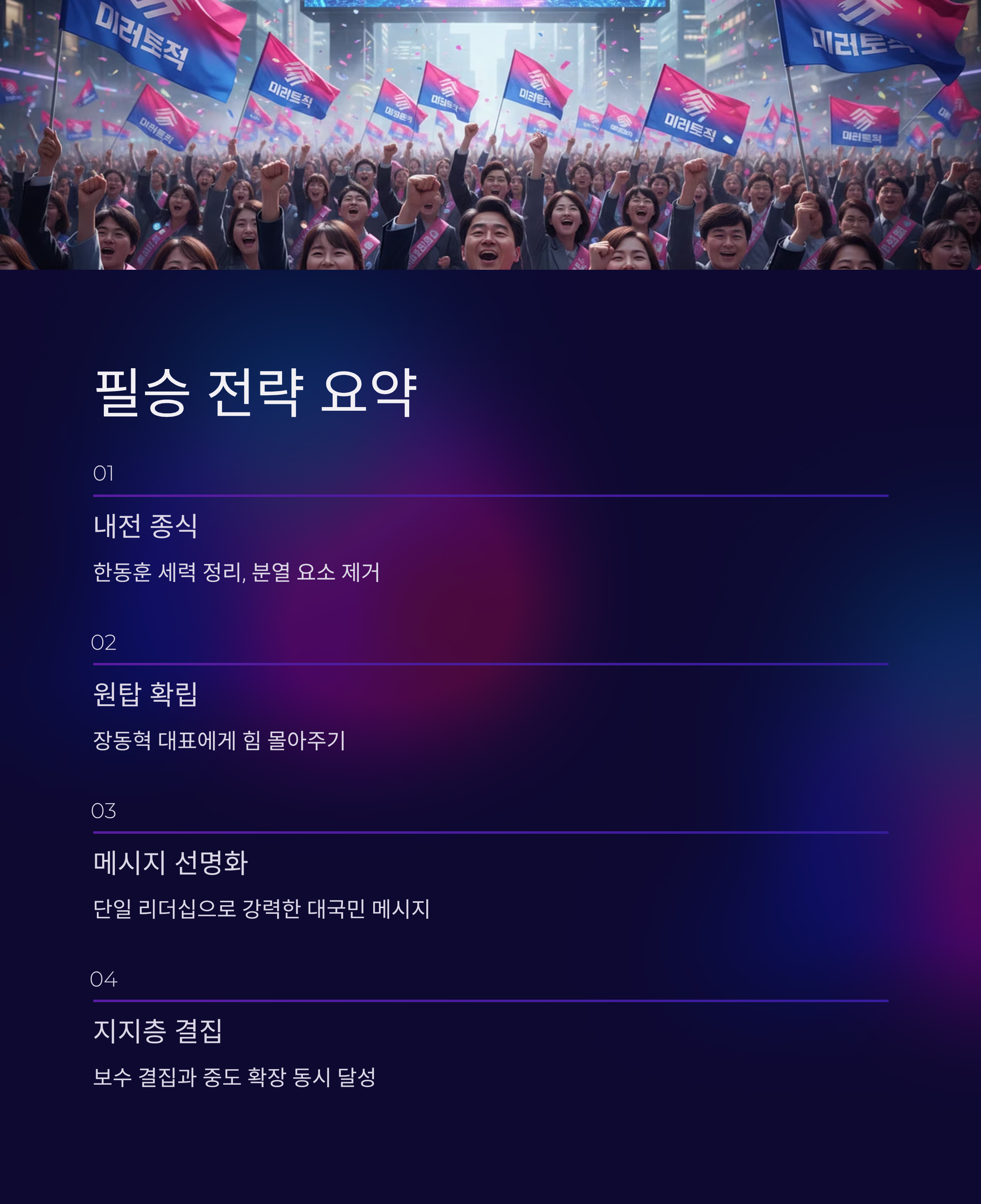 - 4. 결론: 내부 분열 종식과 확실한 대권 주자 확립을 위한 제언