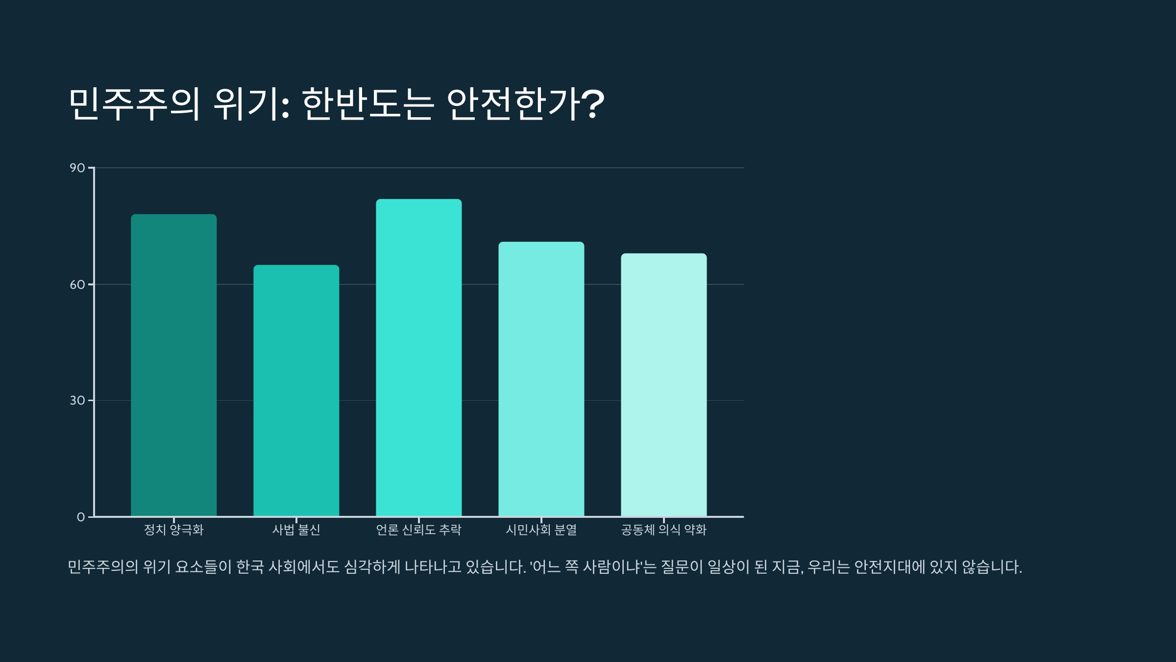 진실을 외면한 언론, 정치를 조롱하는 여야, 서로를 ‘적’이라 말하는 국민들… 이것이 계속된다면 우리는 분열이 아닌 붕괴를 마주하게 될지도 모릅니다. 민주주의는 스스로 무너지지 않습니다. 언제나 그것을 외면한 사람들에 의해 무너집니다. 지금은 바로, 선택의 시간입니다.
