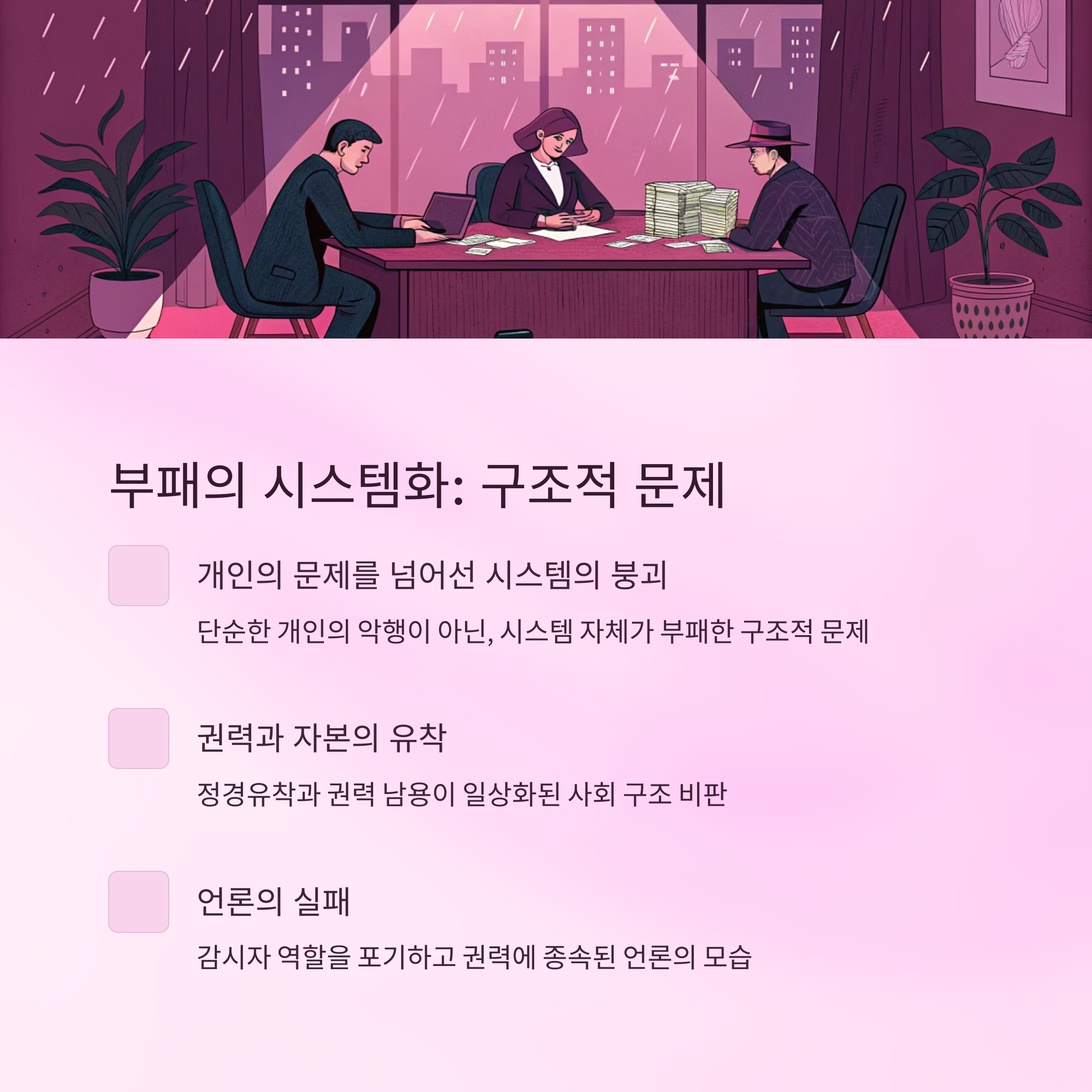 - 부패의 시스템화: 법, 권력, 언론의 공생