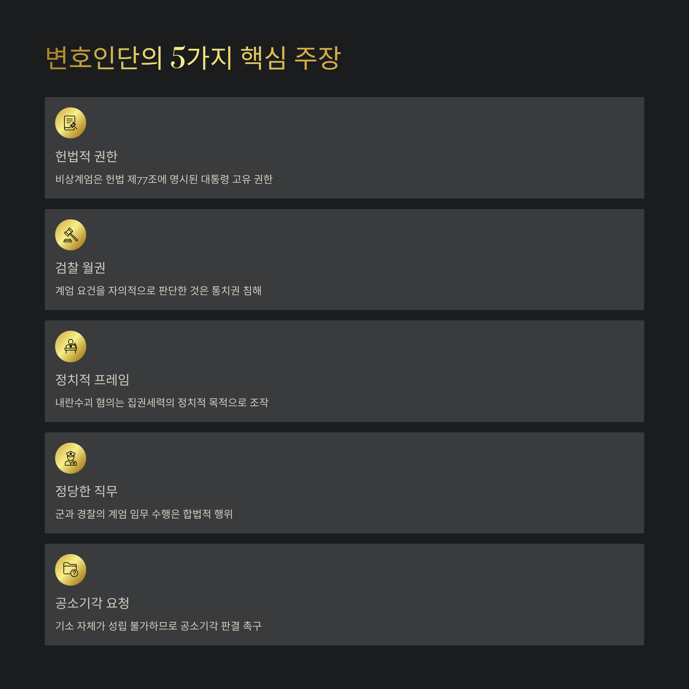 - 2. 핵심요약: 변호인단이 주장하는 비상계엄의 정당성과 검찰 비판
