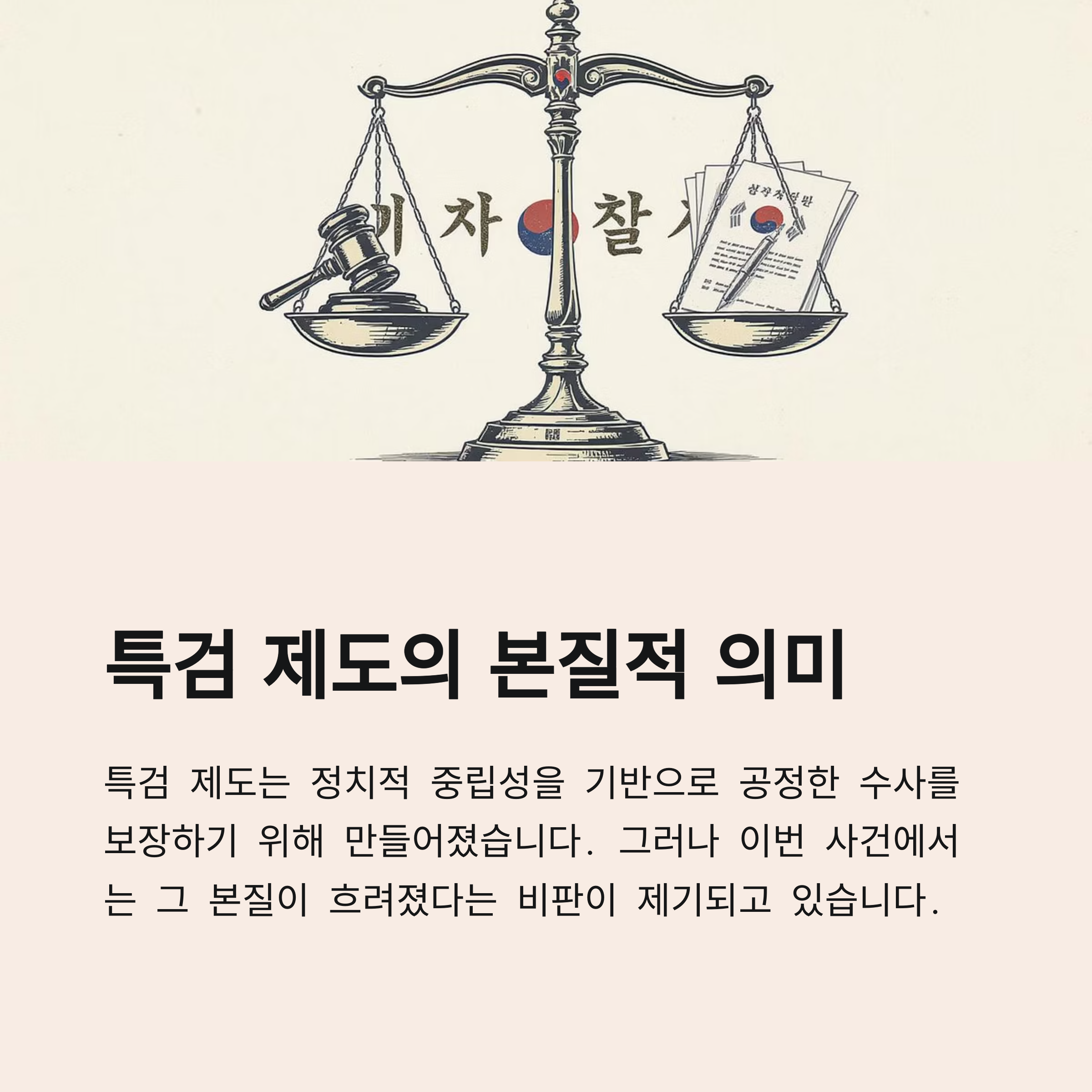 특검은 정치적 중립성을 기반으로 한 제도로, 모든 수사는 그 본질을 유지하며 진행되어야 합니다. 그러나 이번 사건에서 나타난 수많은 논란은 그 본질이 희미해지고 있음을 보여줍니다. 앞으로의 수사 과정은 법적 절차와 규범을 철저히 준수하며, 중립성을 되찾기 위한 노력이 필요합니다.