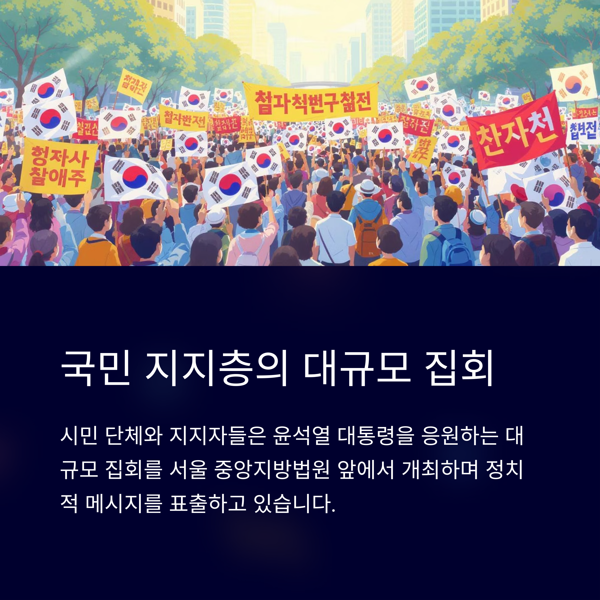 2. 시민 단체와 국민들은 윤 대통령을 지지하며 집회와 캠페인을 크게 확대하고 있습니다.