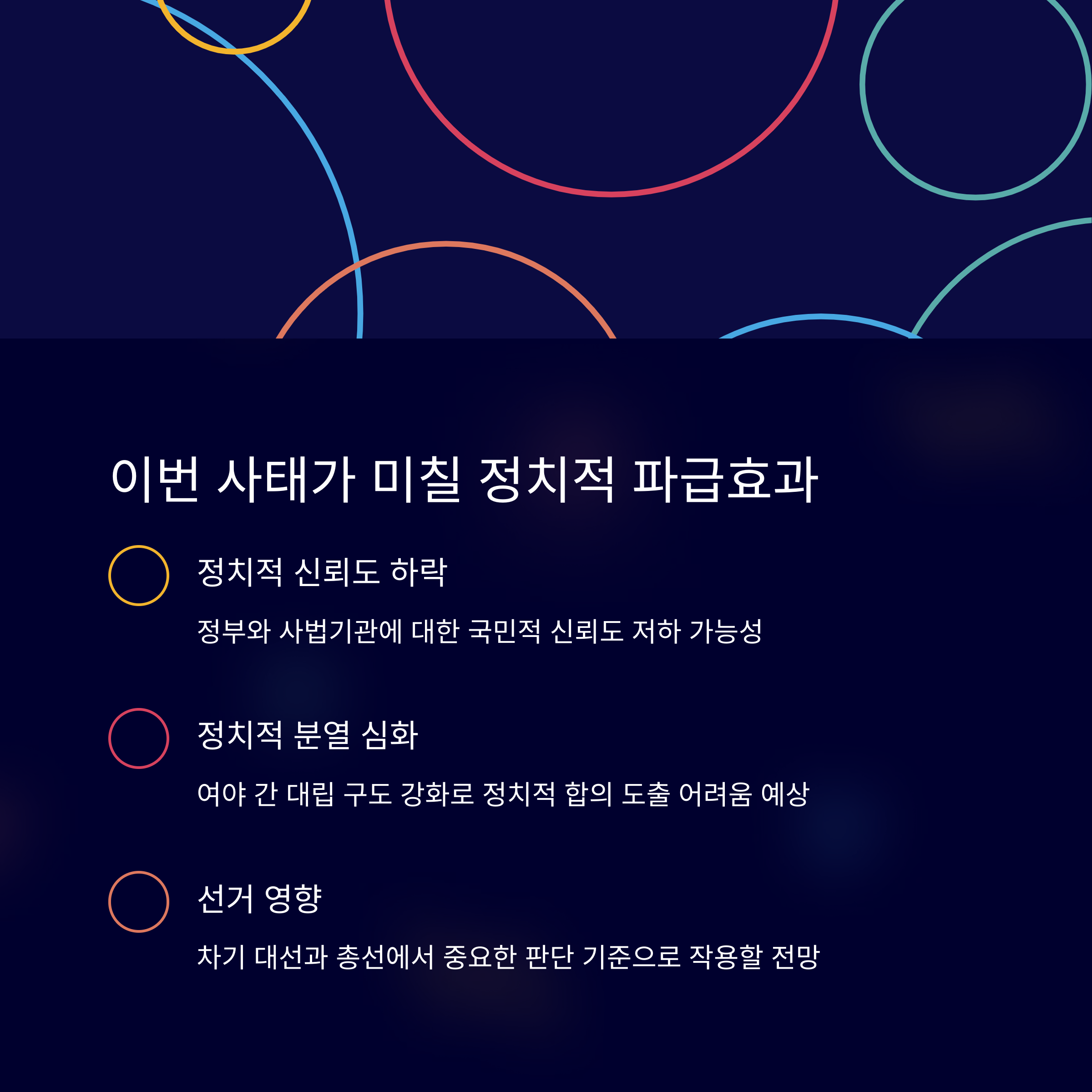 5. 이러한 사안은 대한민국 정치와 사회 분위기에 중대한 영향을 미칠 전망입니다.