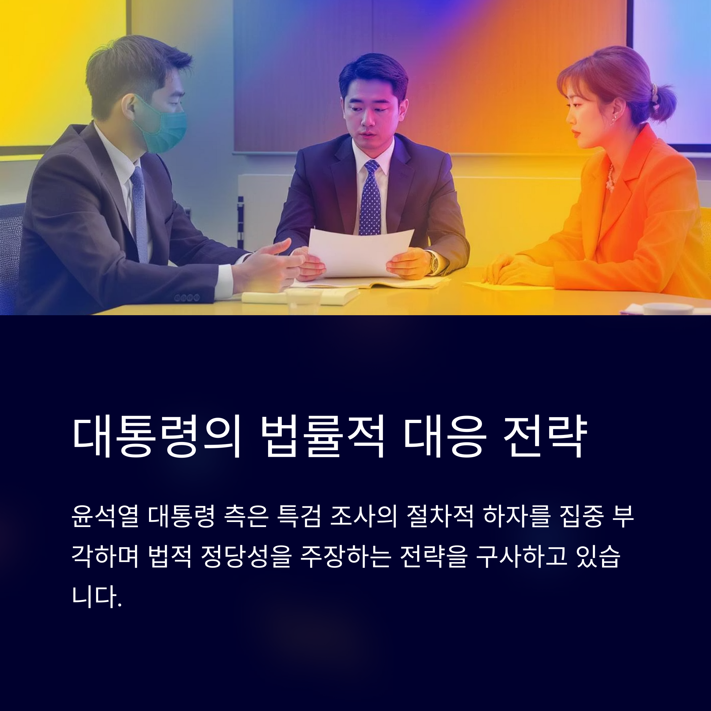 4. 특검 조사 진행 방식에 대한 대통령 측의 반발로 향후 법적 공방 가능성이 커지고 있습니다.