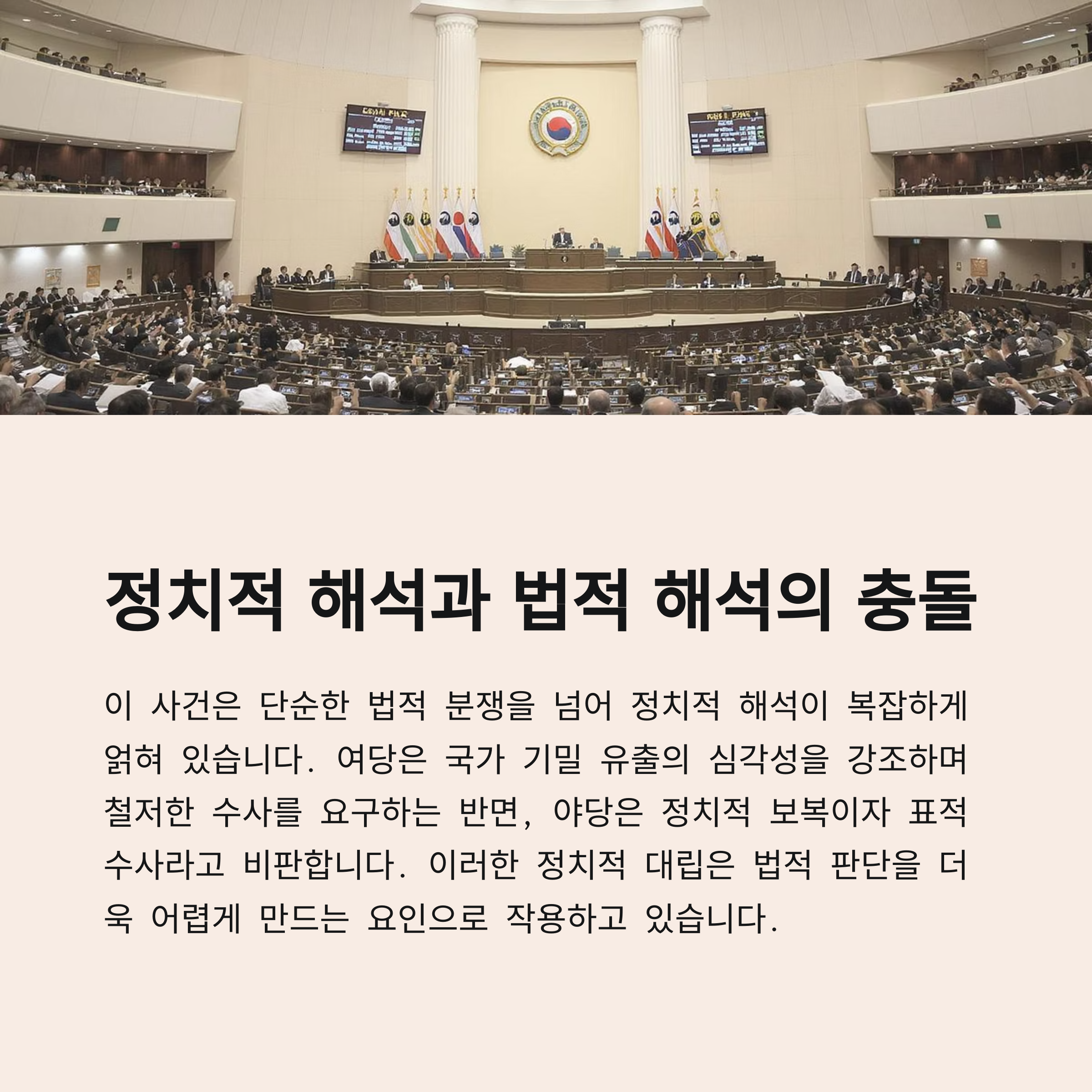 5. 이는 국가 기밀 관리 문제와 절차적 정당성을 포함한 법적, 정치적 논란으로 사건이 확대될 가능성을 내포합니다.