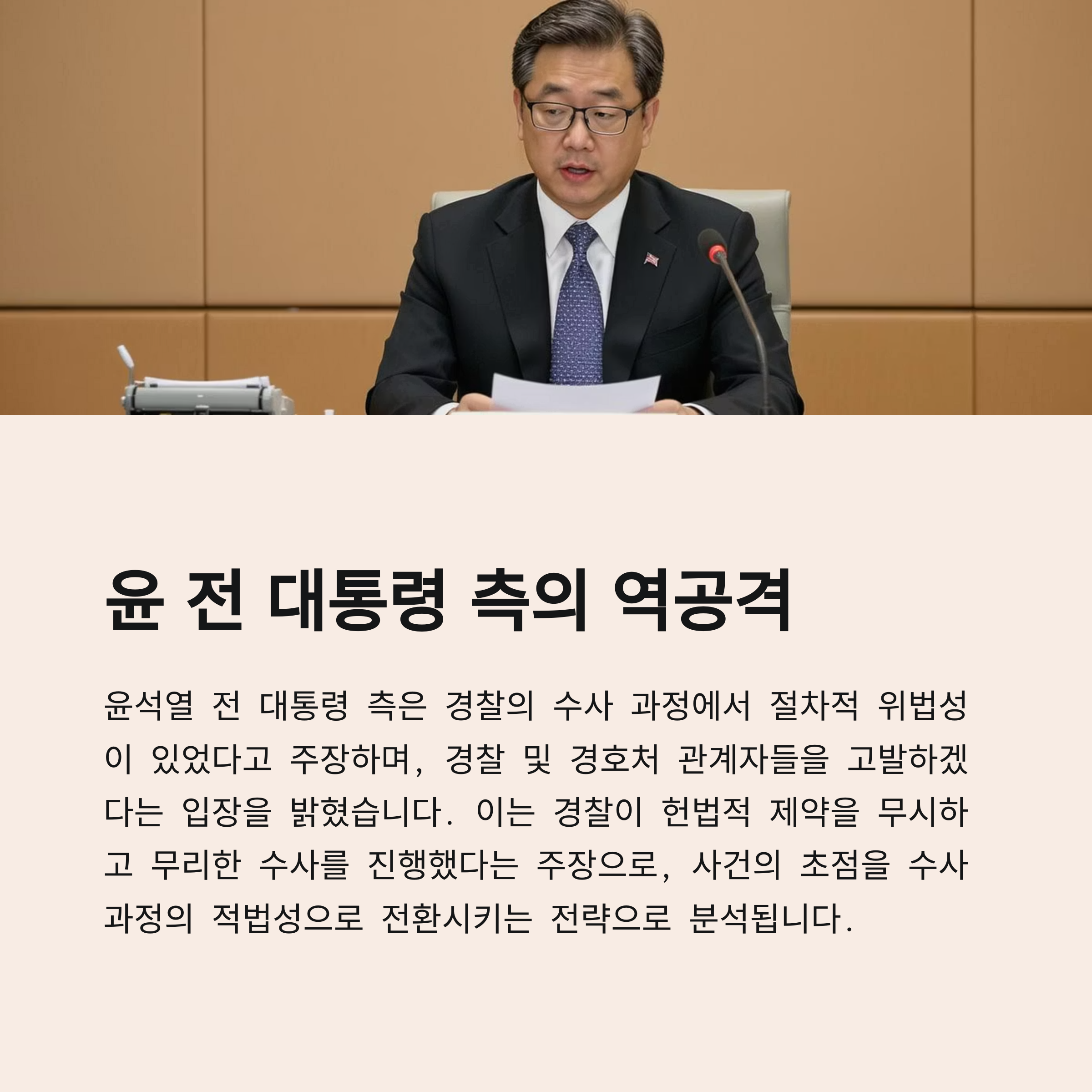 4. 윤 전 대통령 측은 경찰의 수사 절차에 법적 문제가 있었다고 주장하며 경찰 및 경호처 관련자를 고발하겠다고 밝혔습니다.