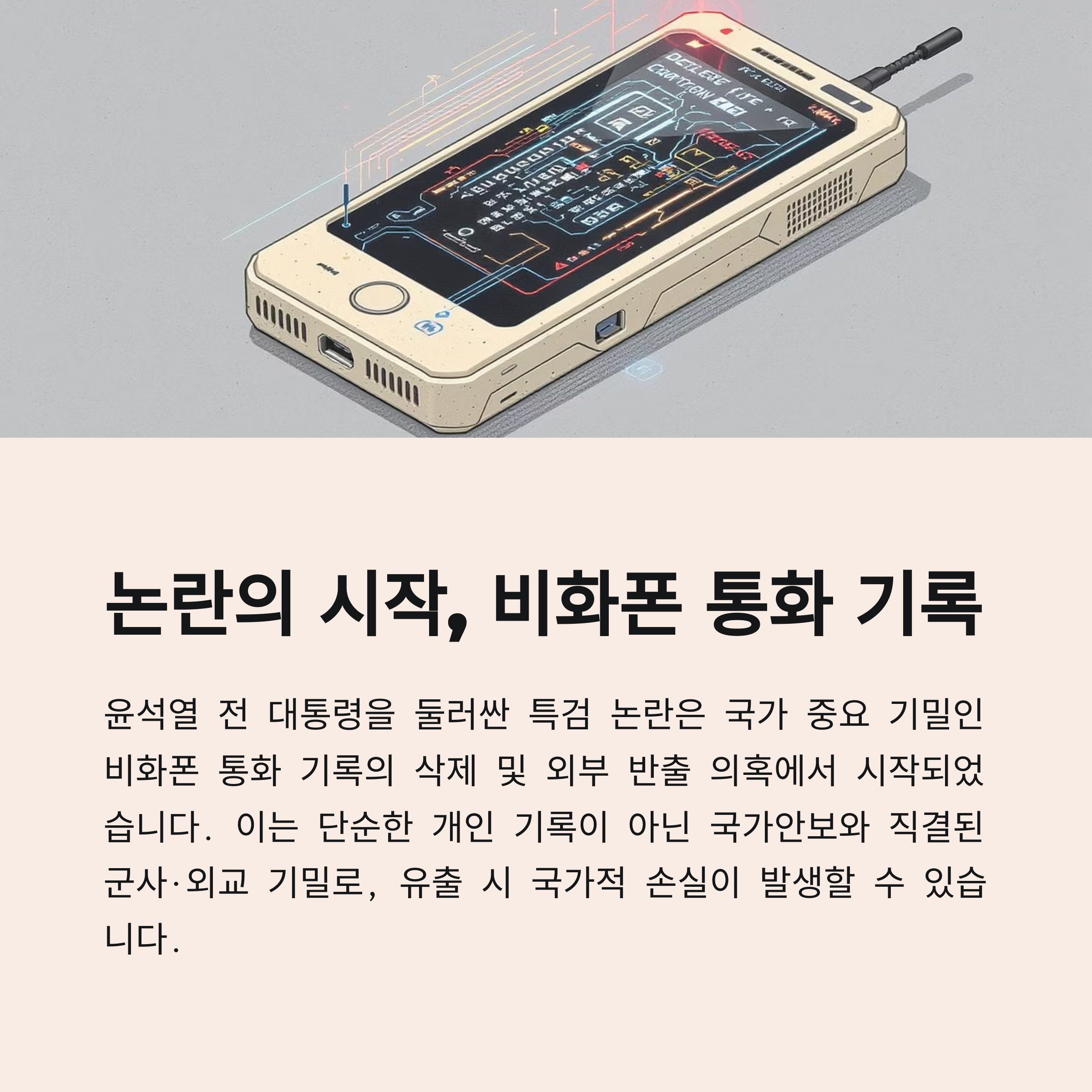 윤석열 전 대통령을 둘러싼 특검 논란이 새로운 국면으로 들어서면서 법적 공방이 더욱 심화되고 있습니다. 특히 비화폰 통화 기록의 삭제 및 외부 반출과 관련한 의혹은 논란의 중심에 자리 잡고 있습니다. 이 사건은 국가 기밀 관리와 헌법에 명시된 대통령 불소추 특권 관련 논란을 불러일으키며, 관련된 법적·정치적 쟁점이 복잡하게 얽혀 있습니다.