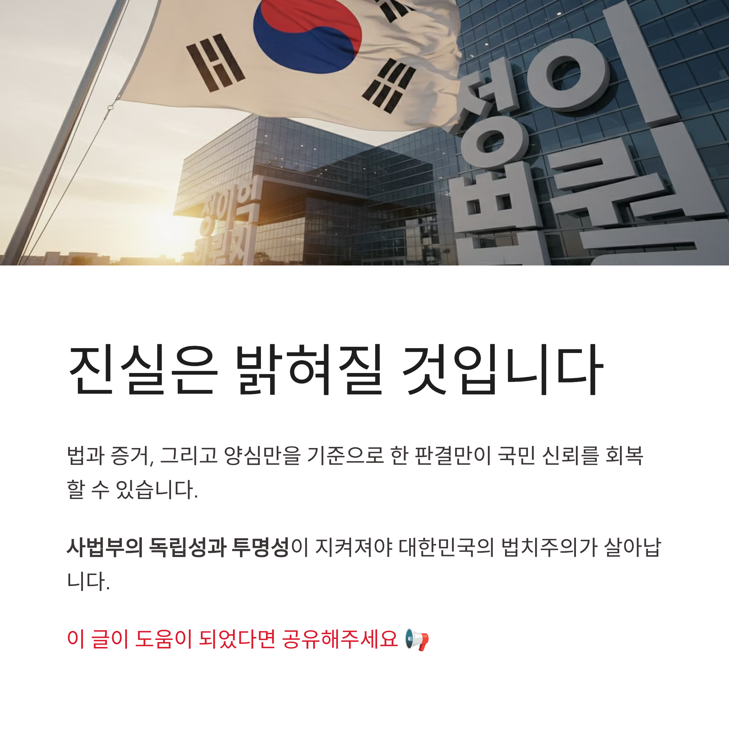 이 사건은 비단 윤석열 전 대통령 개인의 법적 책임을 묻는 것을 넘어, 대한민국의 법률 제도가 얼마나 공정하고 투명하게 작동하는가를 가늠하는 시금석이라고 할 수 있습니다. 우리는 지금 깨진 법치주의가 초래할 악영향과 혼란을 막기 위해, 사법부가 정치적 외압을 이겨내고 진정한 정의를 구현할 것을 기대합니다. 오로지 법과 증거, 그리고 양심만을 기준으로 한 판결만이 국민 신뢰를 회복할 수 있습니다.