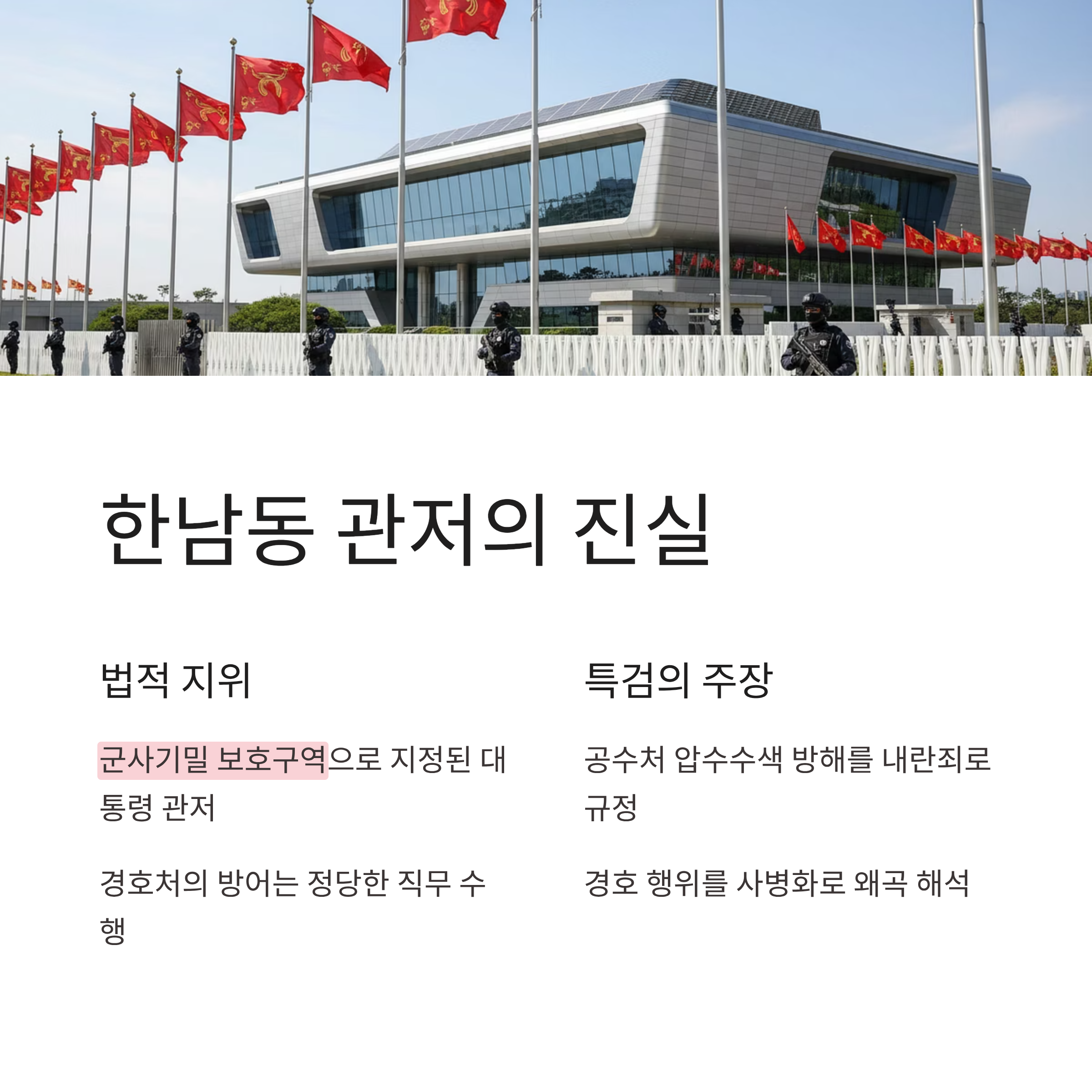 3. 한남동 대통령 관저가 군사기밀 보호구역임에도 불구하고 경호처의 방어 행위를 불법으로 몰아갔습니다.