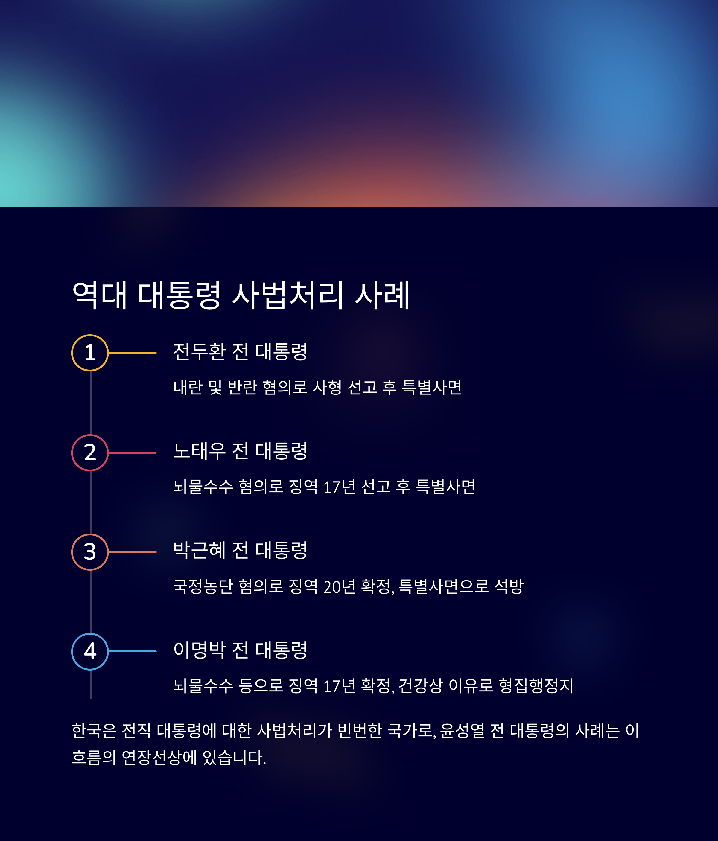 | A. 윤석열 전 대통령 사건의 판결은 법적 판례가 되어 이후 유사 사건에 중요한 기준으로 작용할 가능성이 높습니다. 이는 특히 고위공직자 처벌과 관련해 중요한 의미를 가질 것입니다. |