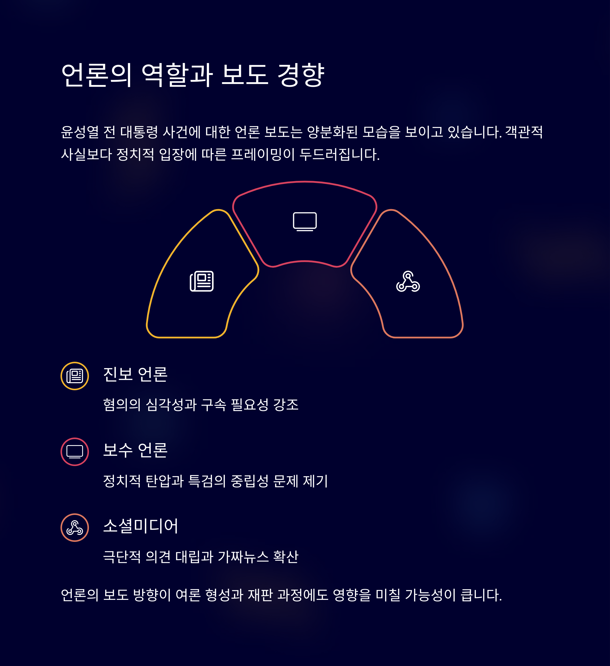 - 법적 판단과 더불어 여론의 향배도 사건의 최종 결론에 영향을 미칠 것으로 보입니다.