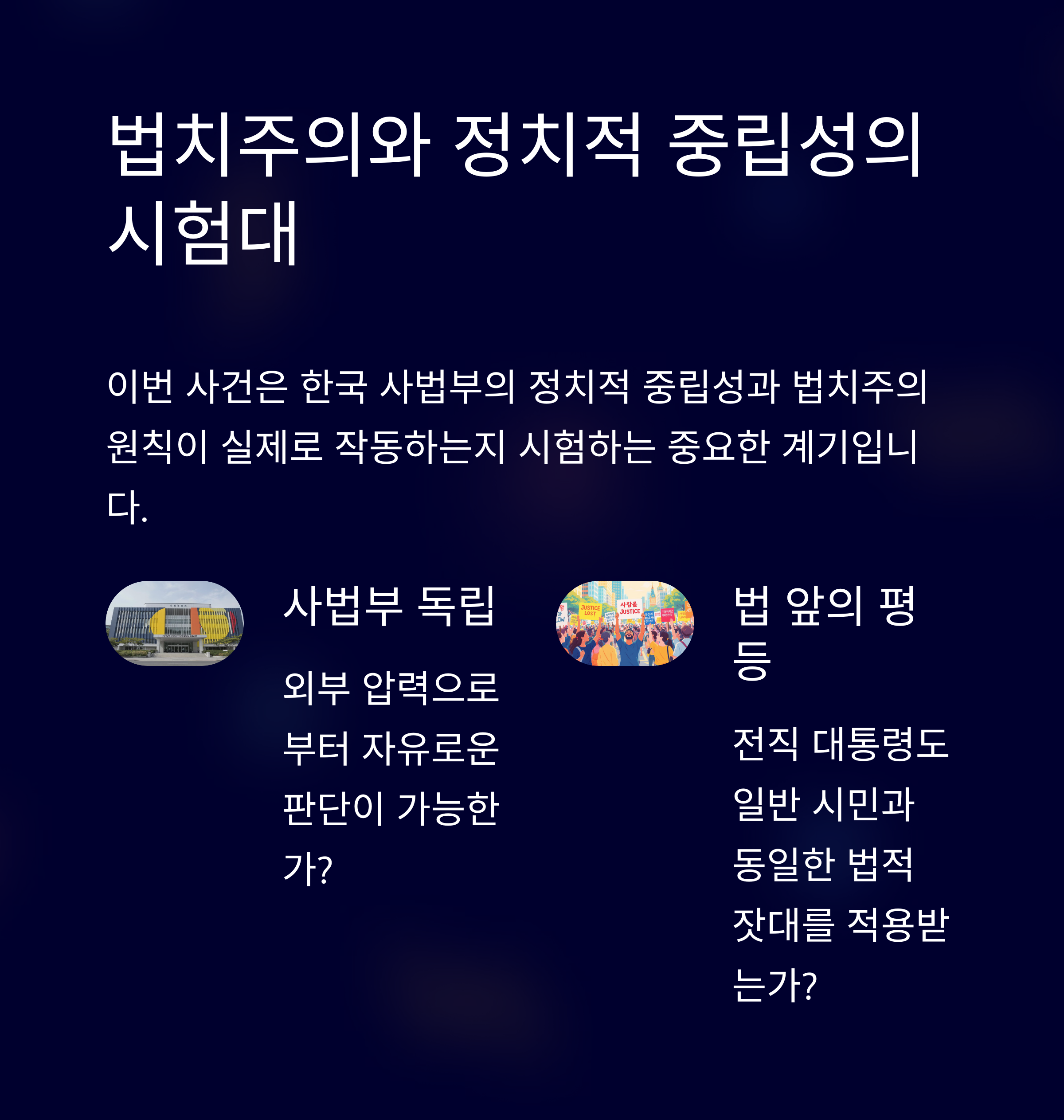 여론 역시 이번 사건에서 중요한 역할을 합니다. 특정 정치 세력의 입장보다 사건의 본질에 대한 국민적 이해가 확대된다면 보다 건강한 법적 논의가 가능해지지만, 그렇지 못할 경우 이는 여전히 정치적 갈등을 심화시키는 도구로 작용할 수 있습니다. 결국, 남 판사의 판결은 법적 판단 이상의 의미를 갖고 있다는 평가를 받을 것입니다.