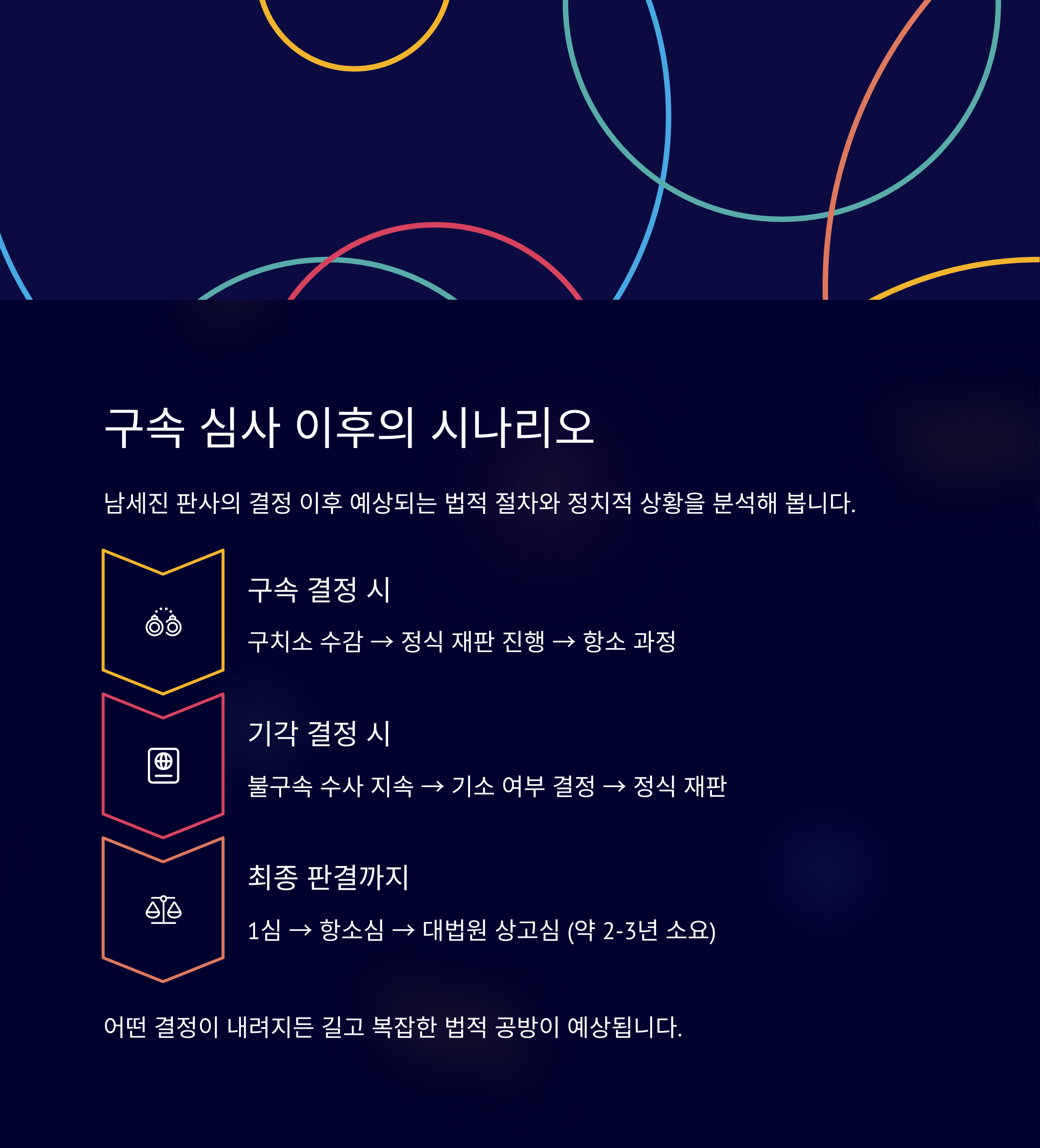 이번 윤석열 전 대통령 구속 심사는 단순히 한 인물의 구속 여부를 가리는 사건이 아니라, 대한민국의 법치주의와 사법부의 독립성이 검증되는 시험대가 될 것입니다. 남세진 판사의 판결은 이후 정치적 사법 논란에서 선례로 활용될 가능성이 클 뿐만 아니라, 여론과 국제 사회의 관심을 받을 수 있습니다.