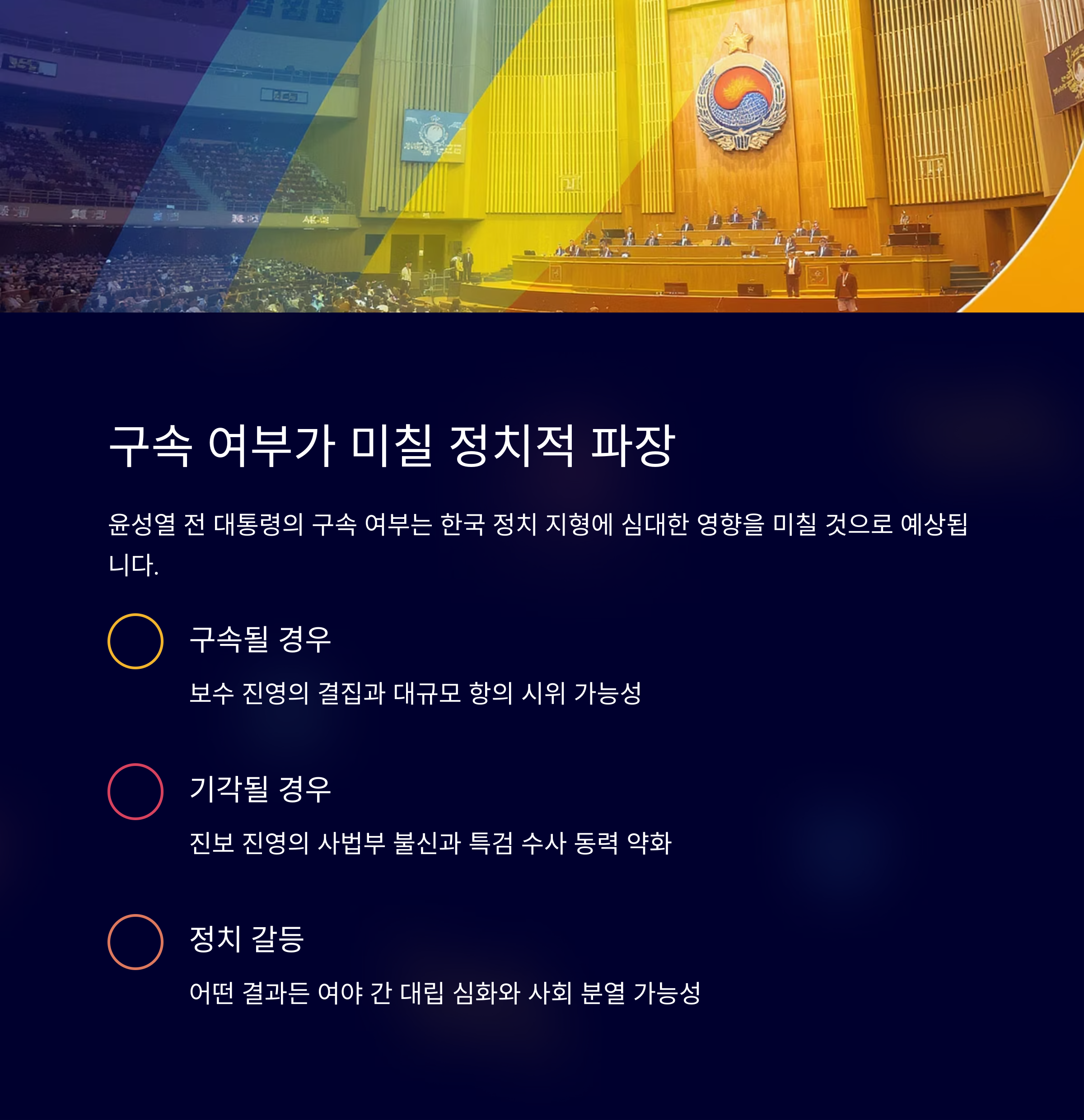 윤 전 대통령의 경우 초기 정치적 입지와는 달리 여러 논란 속에서 법적 시험대에 오른 것은 그 자체로 정치적 파급력을 발휘하며, 그 파급력은 판사가 내리는 판단으로 그 방향성이 결정될 것입니다. 따라서 이번 사건이 단순히 미래 정국 혼란을 야기하는 사례가 아닌 법적 질서를 재정립하는 계기가 되기를 기대합니다.