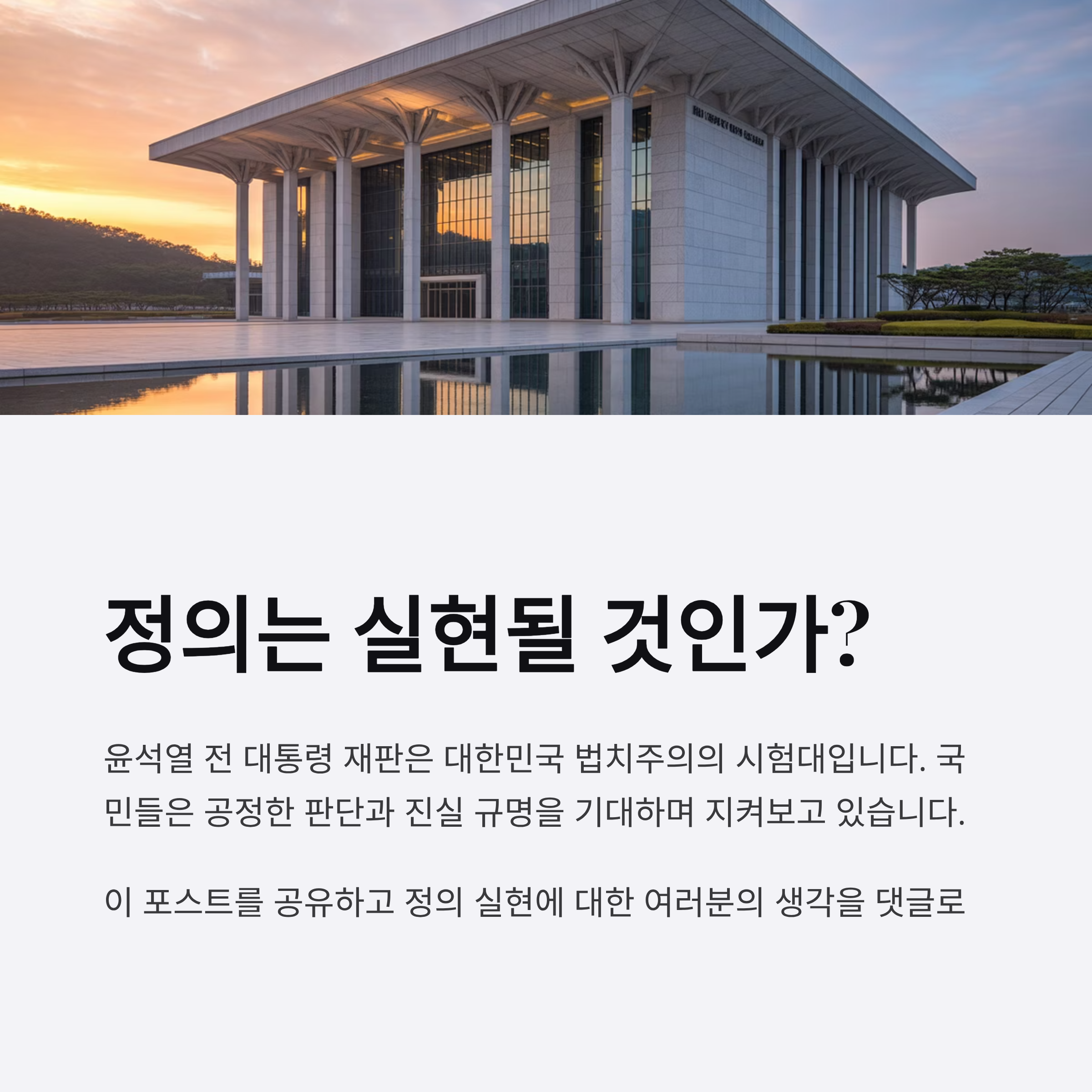 윤석열 전 대통령 내란 혐의 재판은 정치적, 법률적, 사회적 논란이 결합된 매우 중요한 사건입니다. 이를 통해 대한민국의 법치주의와 사법 정의의 기초가 다시 한번 시험대에 올랐습니다. 국민들은 재판 과정을 주의 깊게 지켜보며, 공정한 판단과 신뢰 회복을 기대하고 있습니다. 이번 사건은 단순한 혐의 입증을 넘어, 국민 통합과 법제적 정체성을 확인하려는 시대적 과제를 다루는 과정이라고 할 수 있습니다. 앞으로 남은 재판 절차와 결과가 어떤 형태로 진행되든, 이는 한국 현대사의 기점으로 기록될 것입니다.