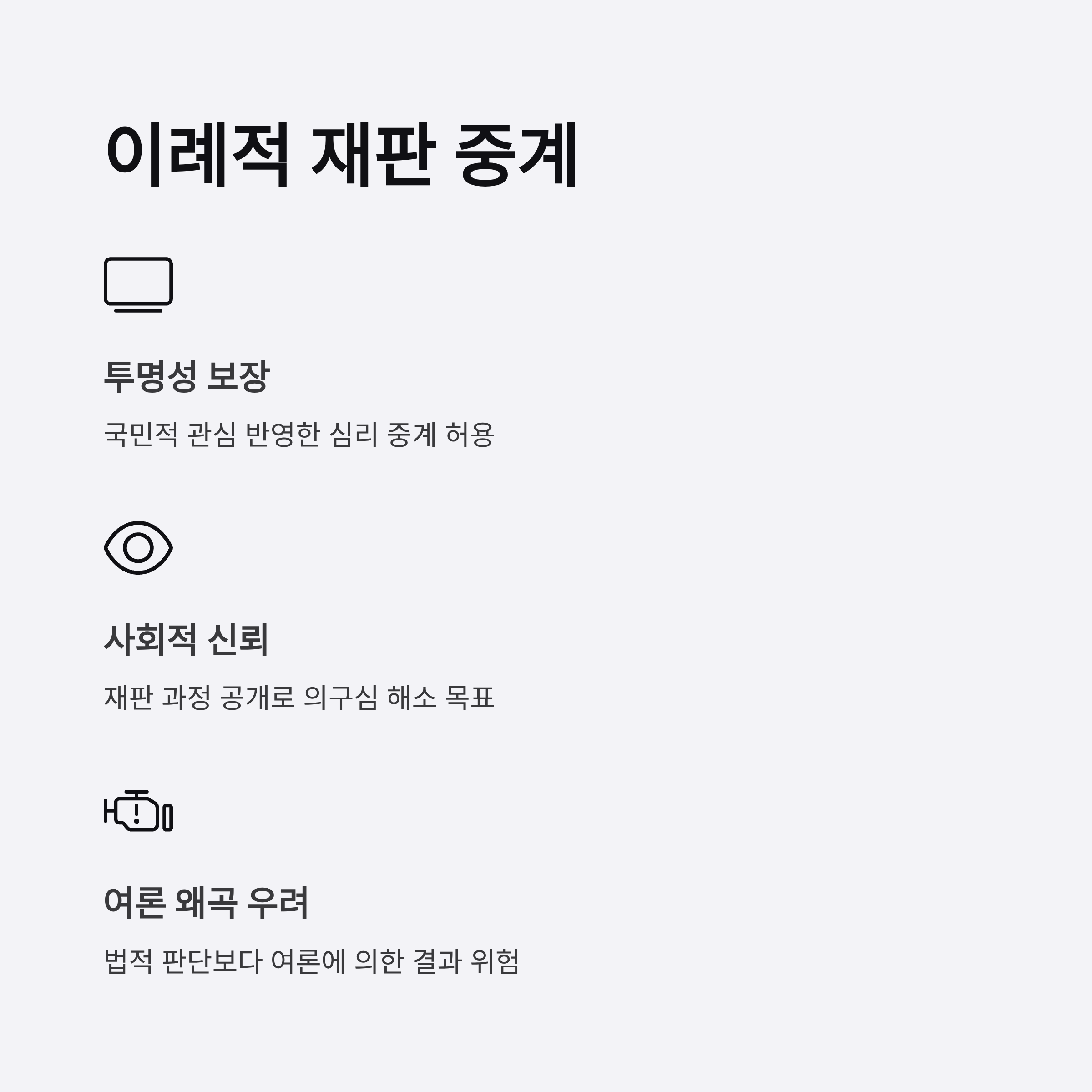 이번 사건은 사법 투명성을 강화하기 위해 재판 중계가 허용된 이례적 사례로 기록되어 있습니다.