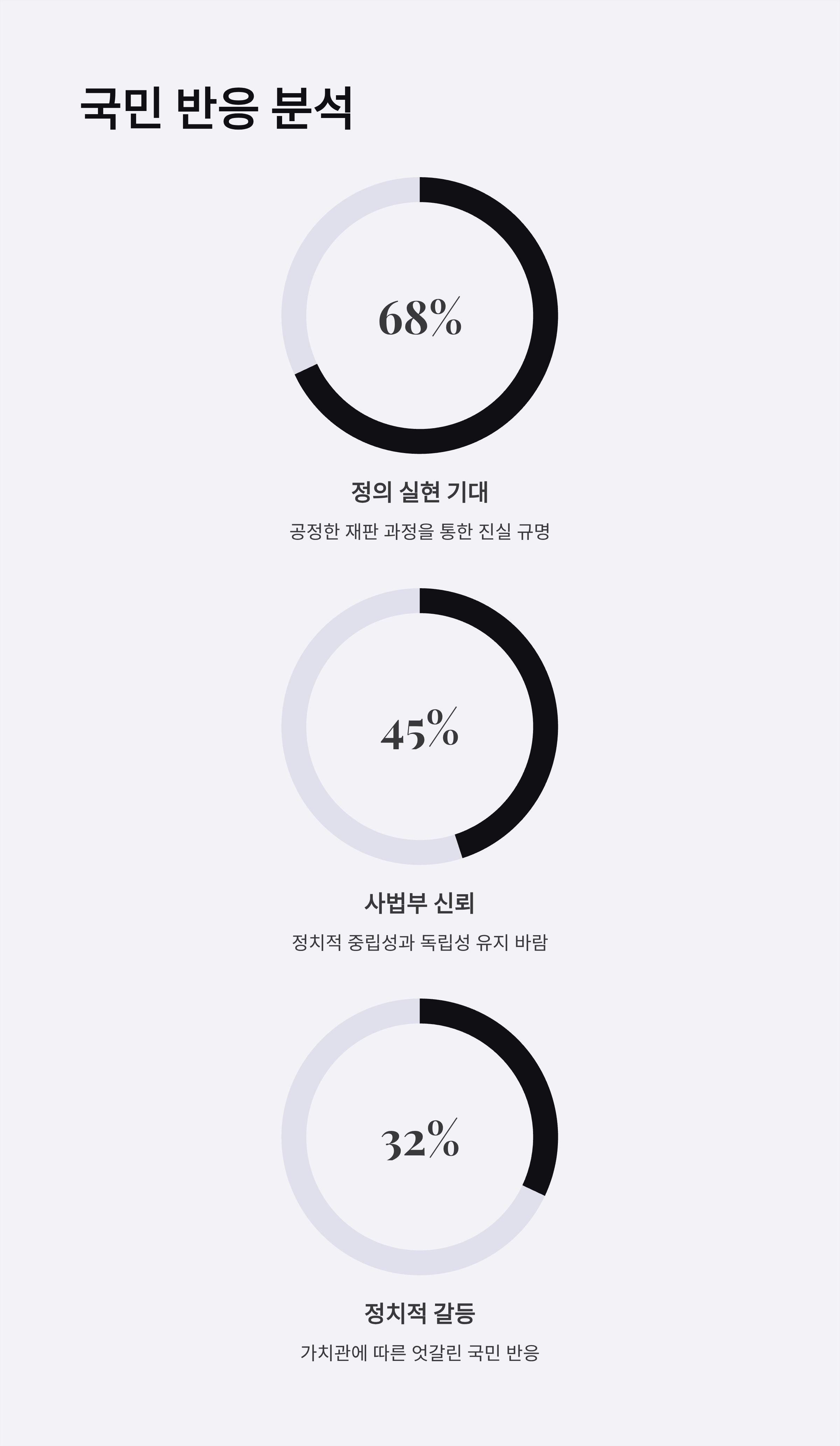 국민들의 기대는 정의 실현과 더불어, 정치적 중립성 유지과 법치주의 강화를 바라고 있습니다.