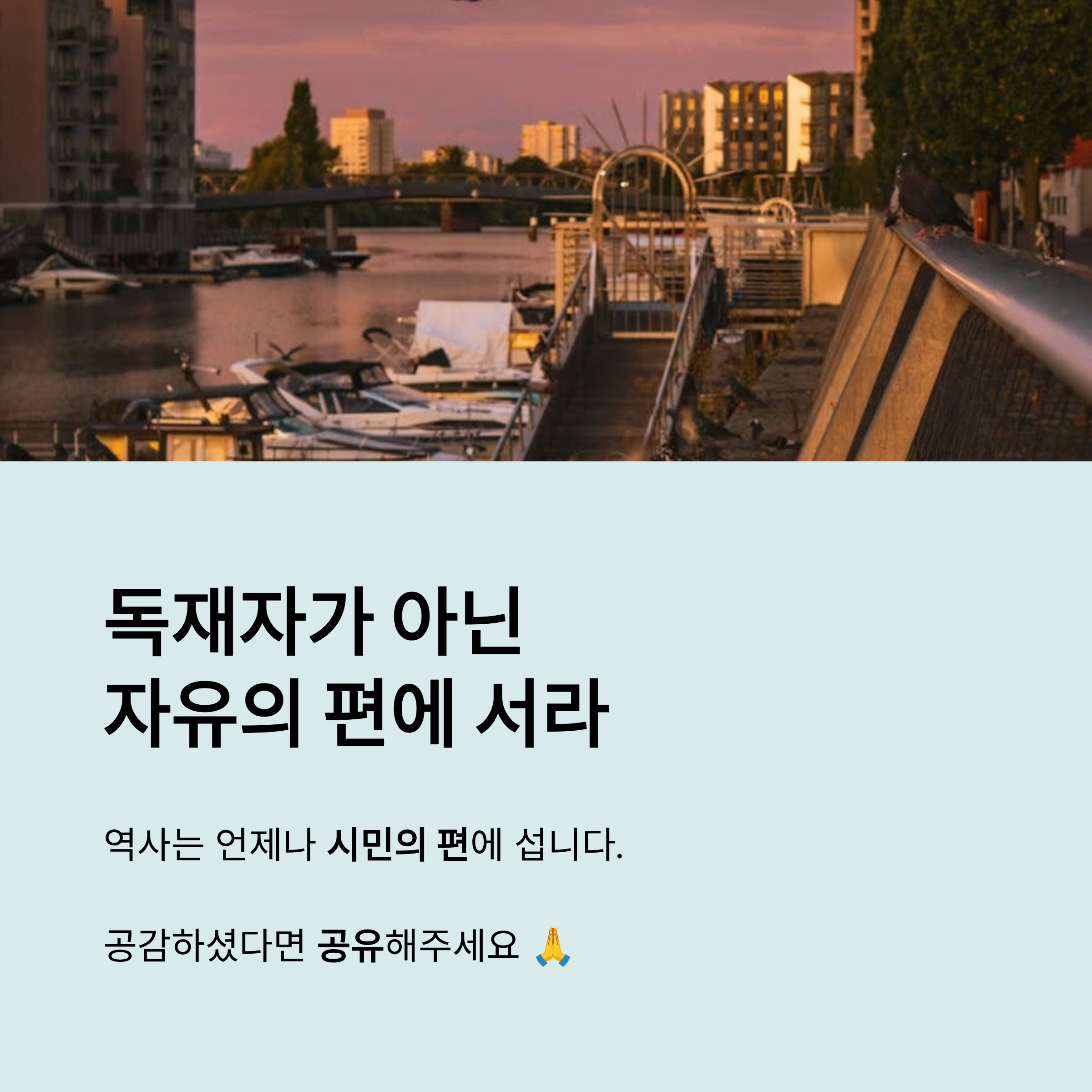 수만 명의 자국민을 학살한 독재자를 옹호하는 것은 '자주'나 '평화'가 아닌 악에 대한 방조이며, 폭력에 대한 암묵적 동의입니다. 우리는 이념의 잣대를 버리고, 고통받는 이란 시민들의 편에 서서 그들의 자유와 해방을 지지하는 성숙한 세계 시민의 자세를 가져야 합니다. 역사는 언제나 독재자의 편이 아닌, 자유를 위해 싸우는 시민의 편에 서서 그들을 기억하고 평가해왔다는 사실을 잊어서는 안 됩니다.