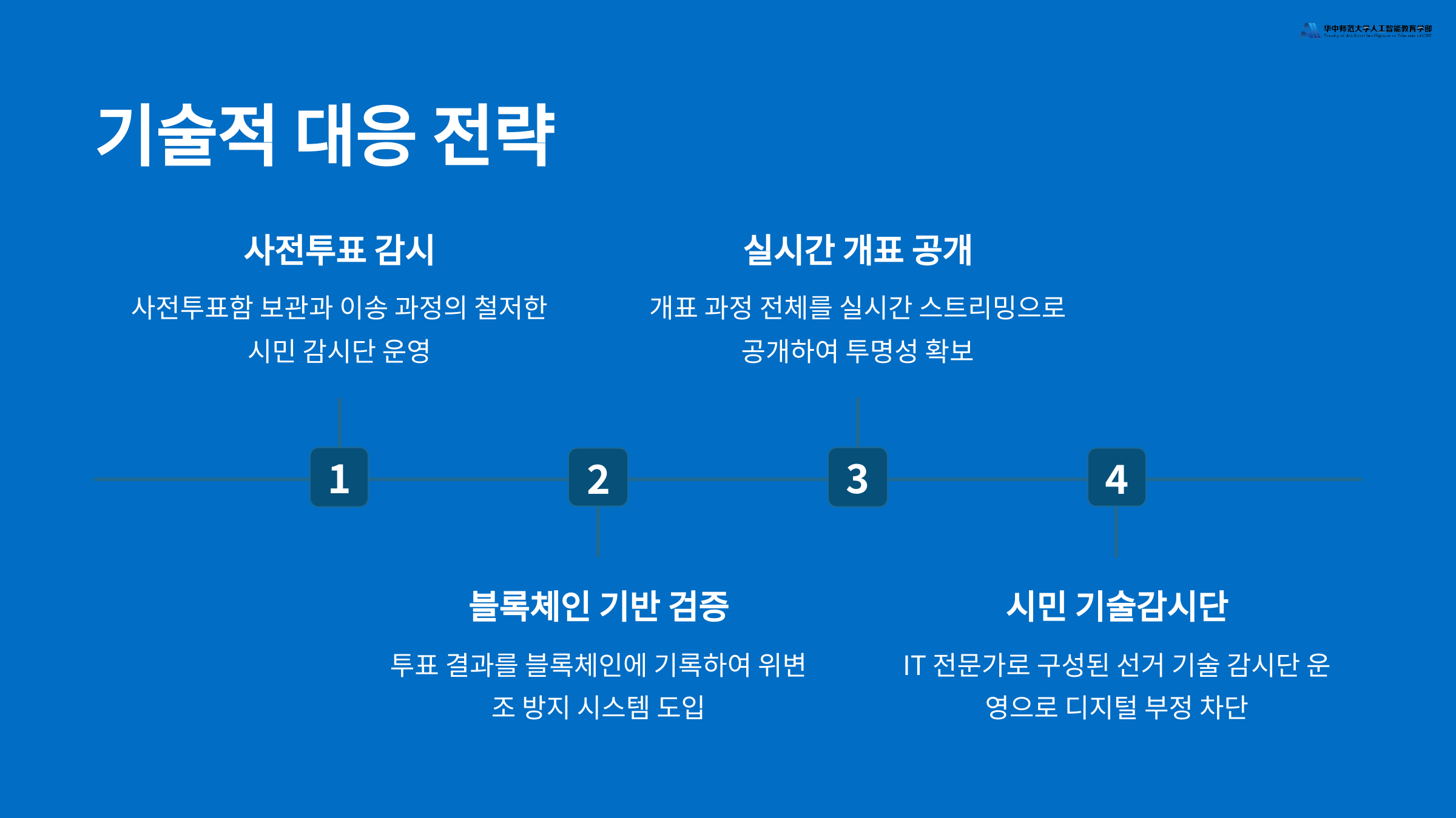- 핵심 전략은 '투표지 분류기의 무력화'와 '사전투표 조작 차단'이다.