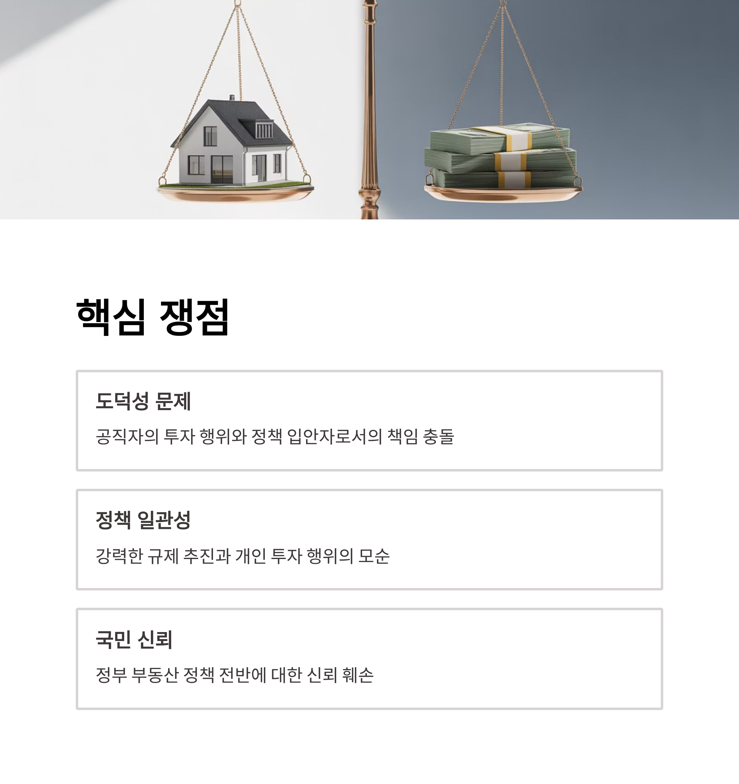 고강도 규제를 통해 부동산 시장 안정화를 추진하던 정부 방침 속에서, 차관의 이러한 행보는 국민들에게 '내로남불'(내가 하면 로맨스, 남이 하면 불륜) 논란을 키운 주요 요인으로 작용했습니다. 이는 영세 실수요자들의 원성과 정책 신뢰 저해로 이어졌습니다.