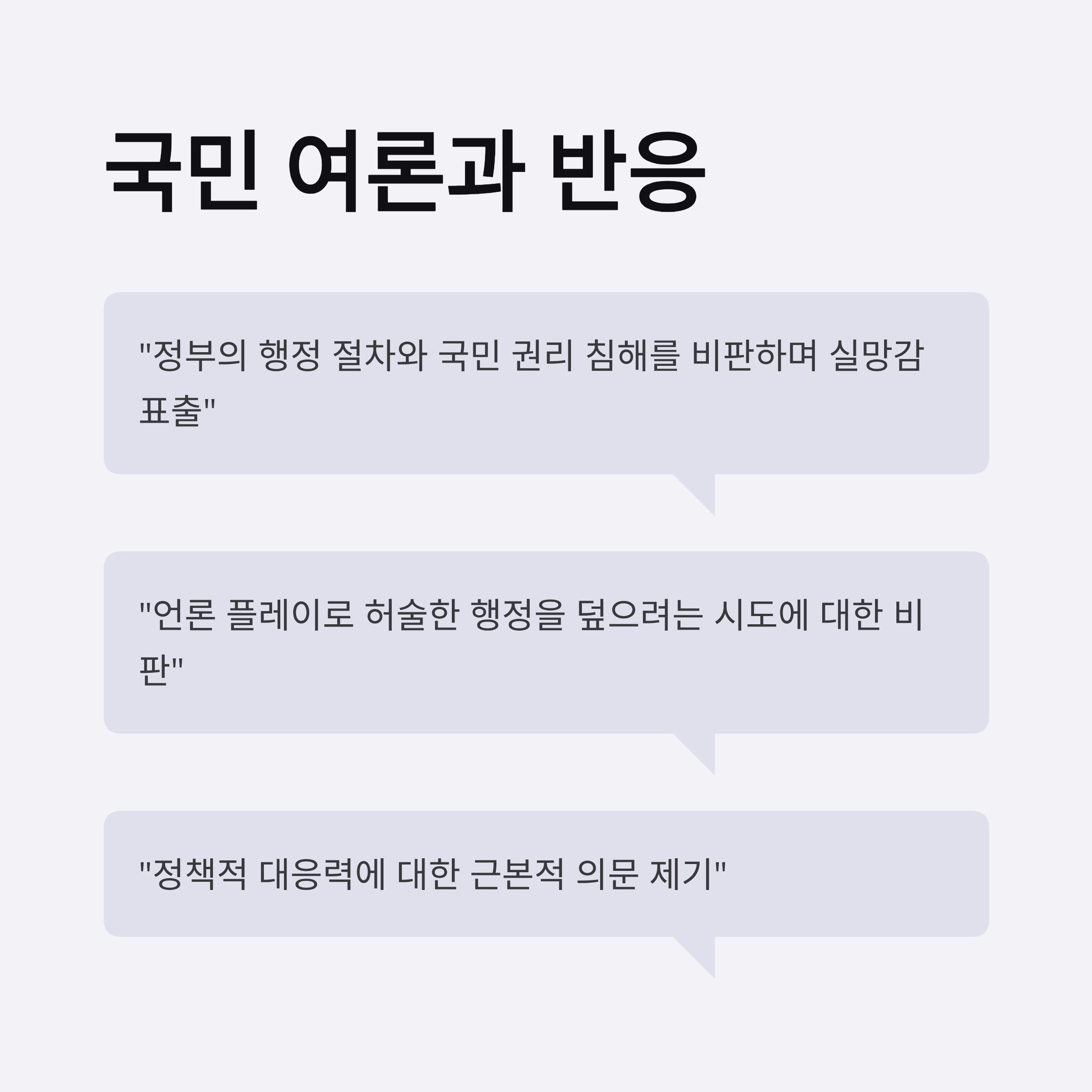 4. 이번 사태는 정부 행정의 준비 부족과 소통 미흡을 드러냈으며, 대중의 실망감을 야기했습니다.