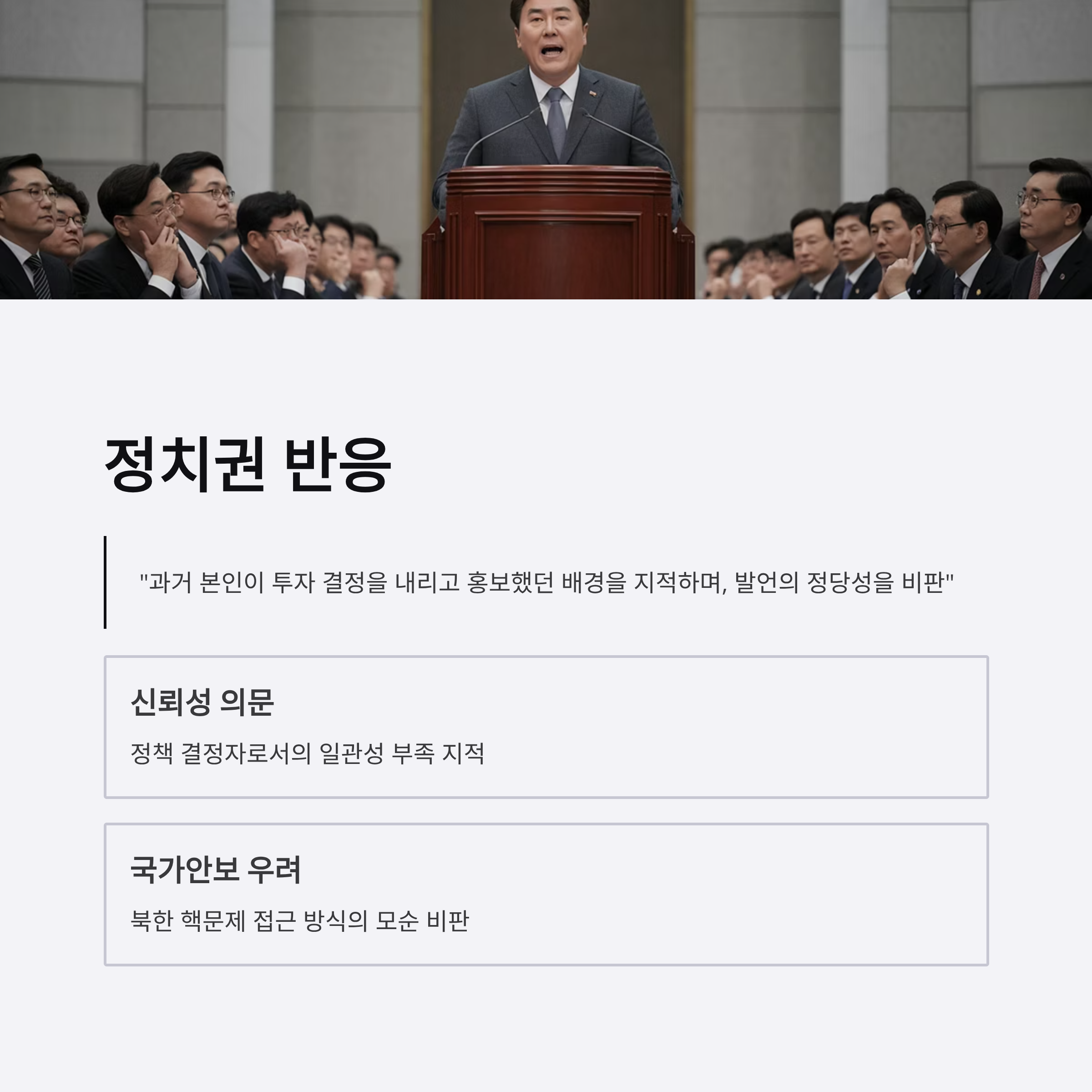2. 또한, 북한 핵 동결에 대한 긍정적인 발언으로 안보 관련 정책의 일관성 문제도 거론되었습니다.
