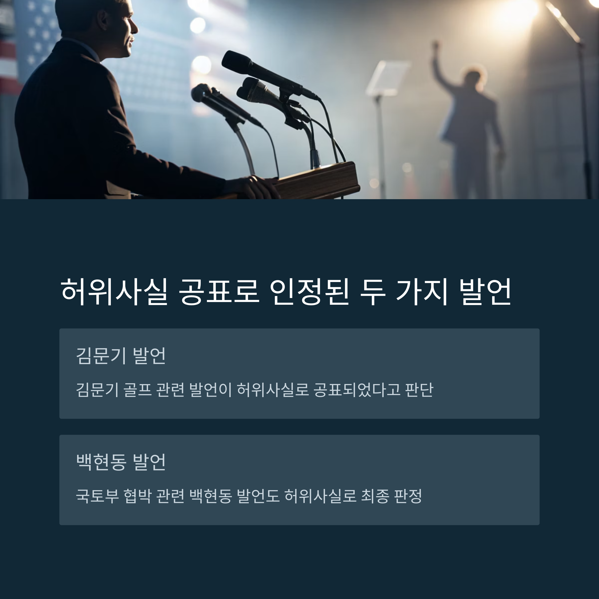 - 이재명의 김문기, 백현동 관련 발언을 허위사실로 판단
