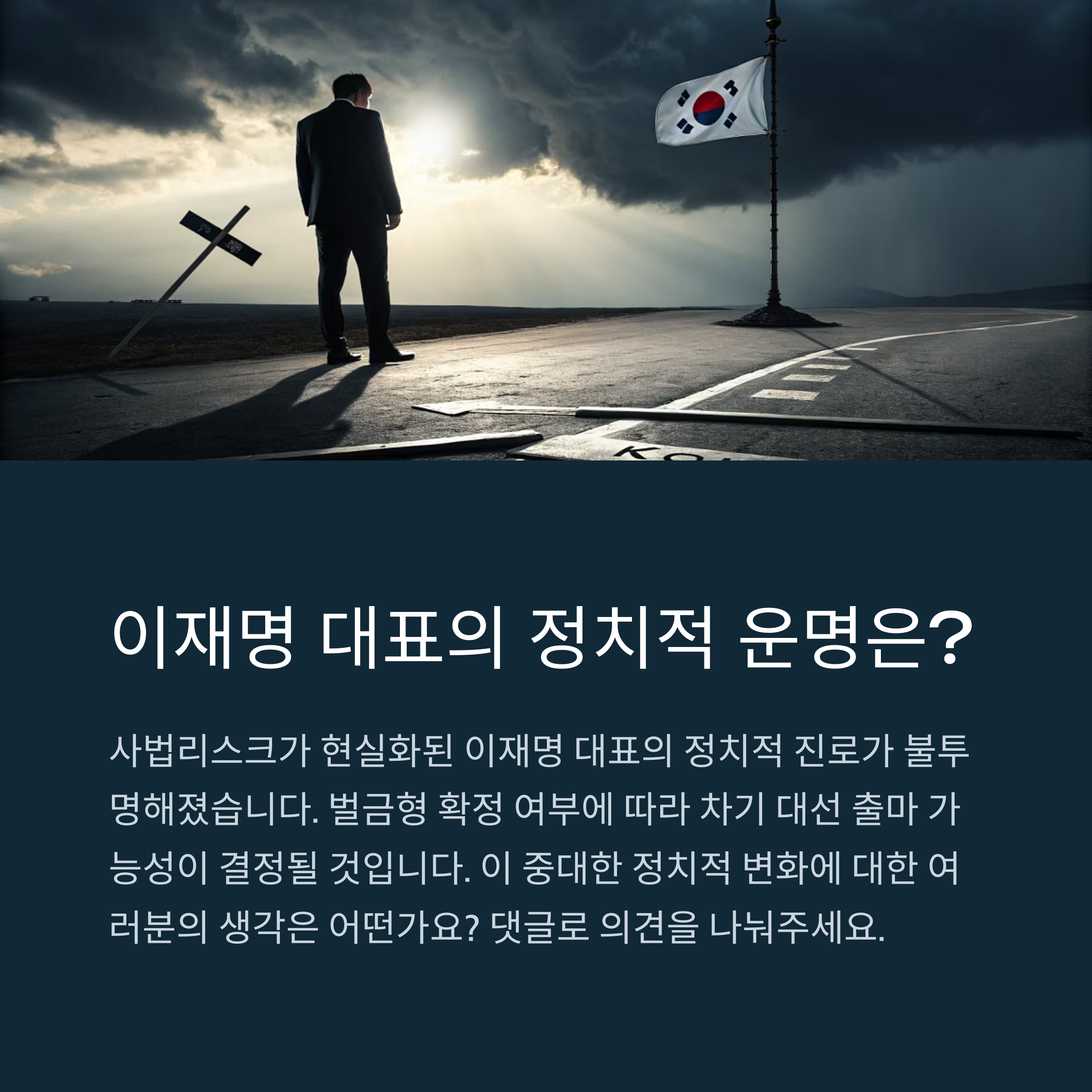 이번 대법원 판결은 단순한 유무죄 판단을 넘어, 이재명 대표의 정치적 생존과 직결되는 문제로 떠올랐습니다. 향후 열릴 환송심 재판이 그의 대선 출마 가능성과 민주당의 전략에 결정적 영향을 미칠 전망입니다.