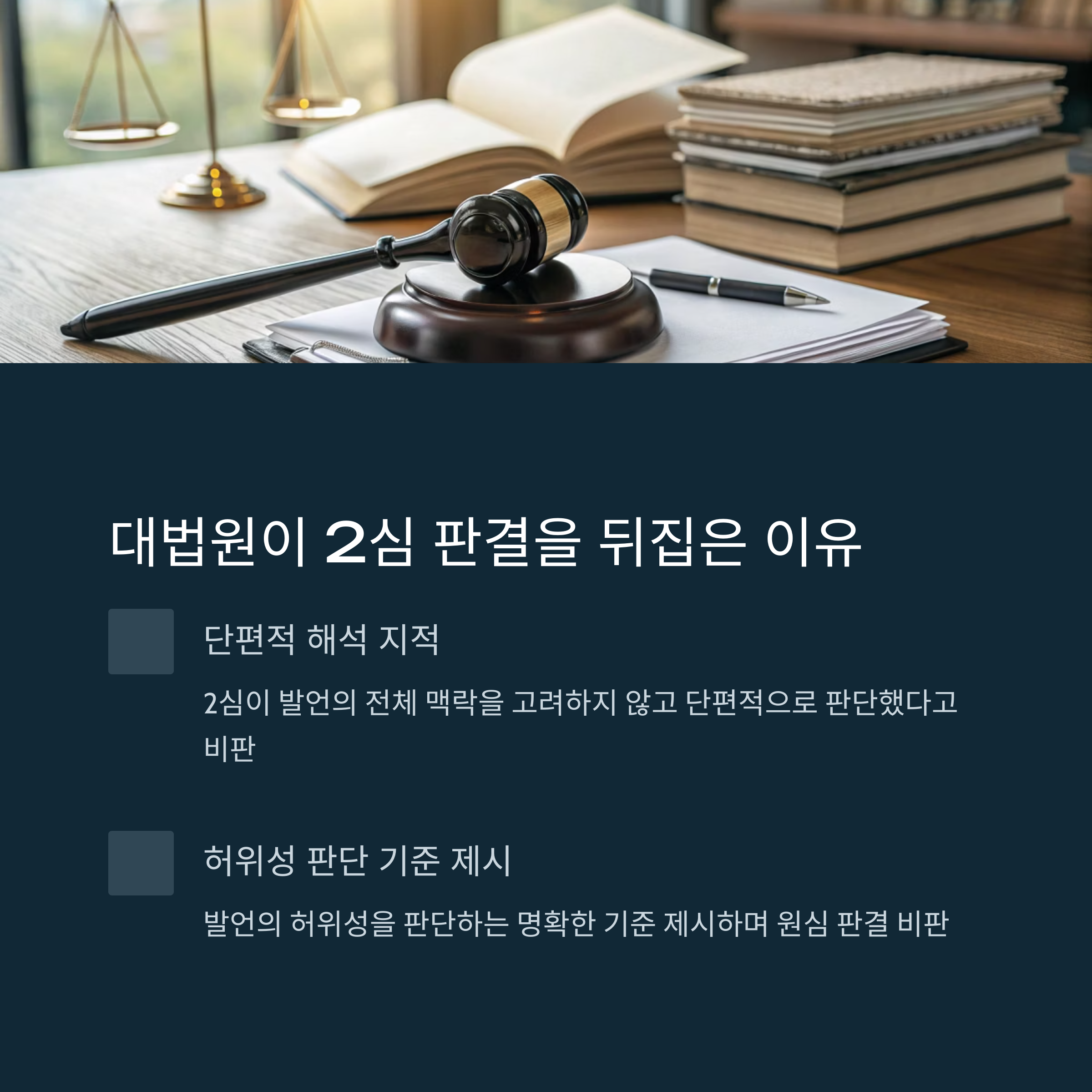 특히 대법원은 발언 내용이 단순 실수가 아닌, 정치적 의도를 내포한 유권자 기만으로 보았다는 점을 분명히 했습니다. 이는 과거 비슷한 사건에서 사실 여부 검토에 실패한 이전 판례와 차별화되는 부분으로, 허위사실 공표가 선거에 직접적인 해를 끼쳤을 가능성을 강조하고 있습니다.