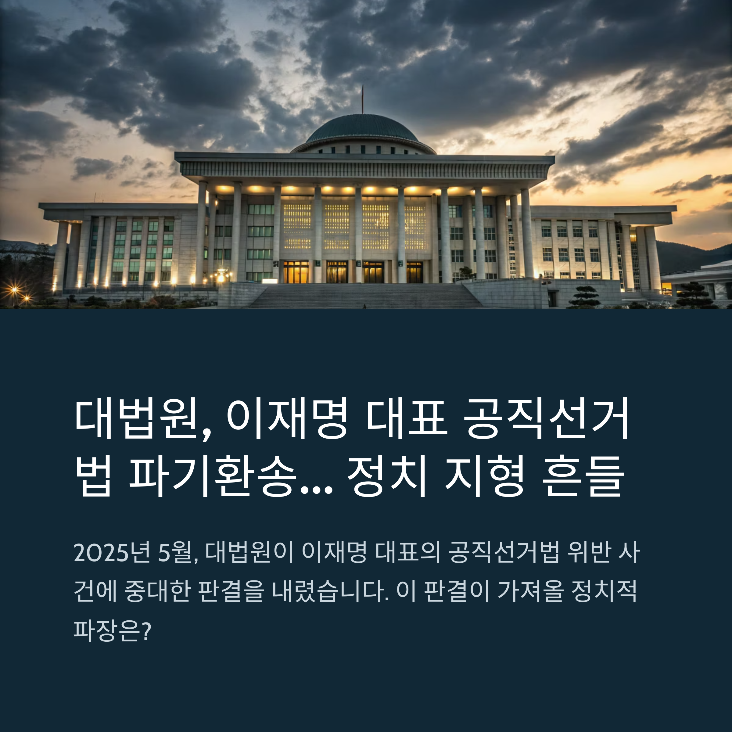 관련 태그: 이재명, 공직선거법 위반, 대법원 판결, 2025년 대선, 정치적 여파, 환송심, 국민의힘, 더불어민주당