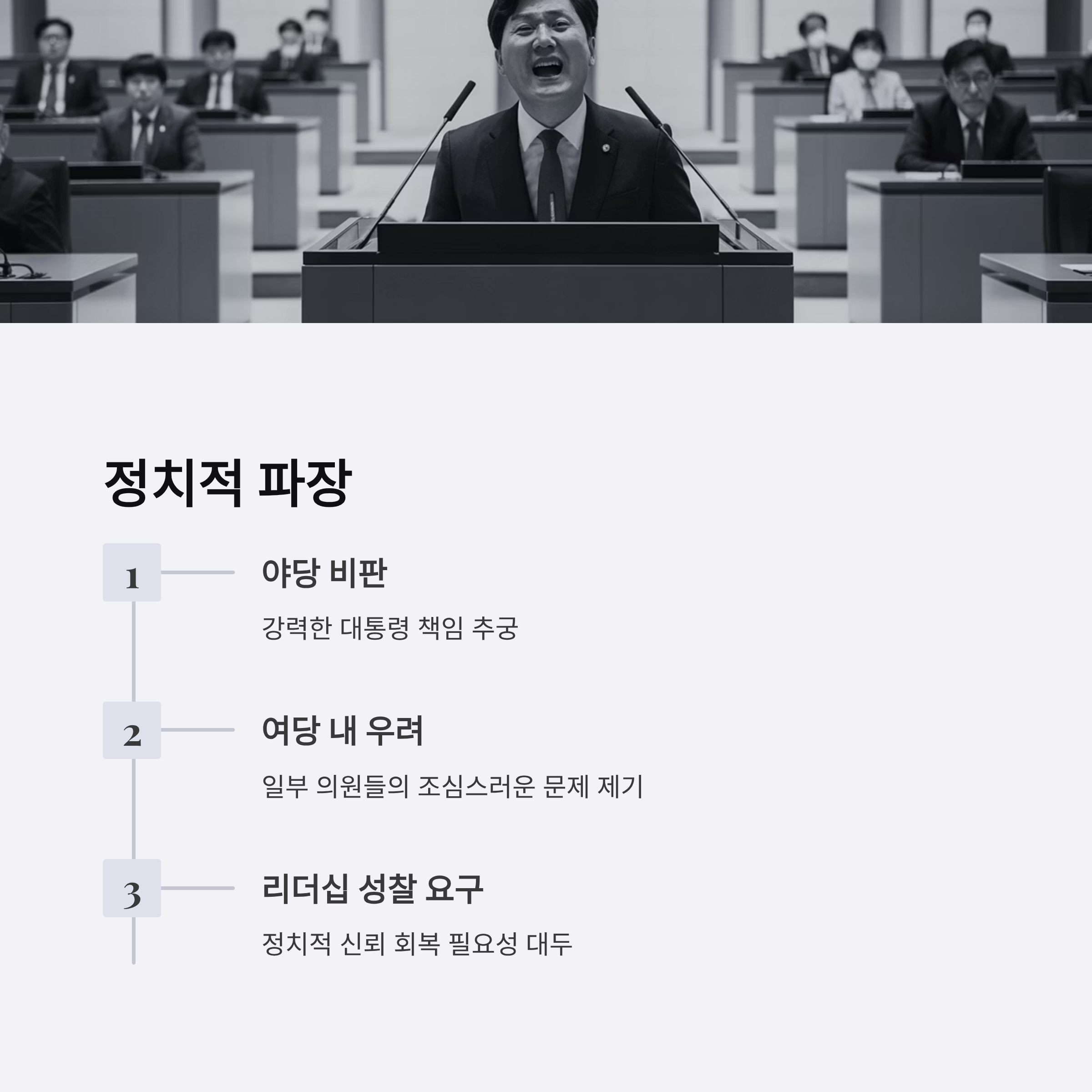 - 여야 정치권은 이번 사건에 대해 입장을 강하게 표명하며 대통령의 책임을 묻고 있습니다.