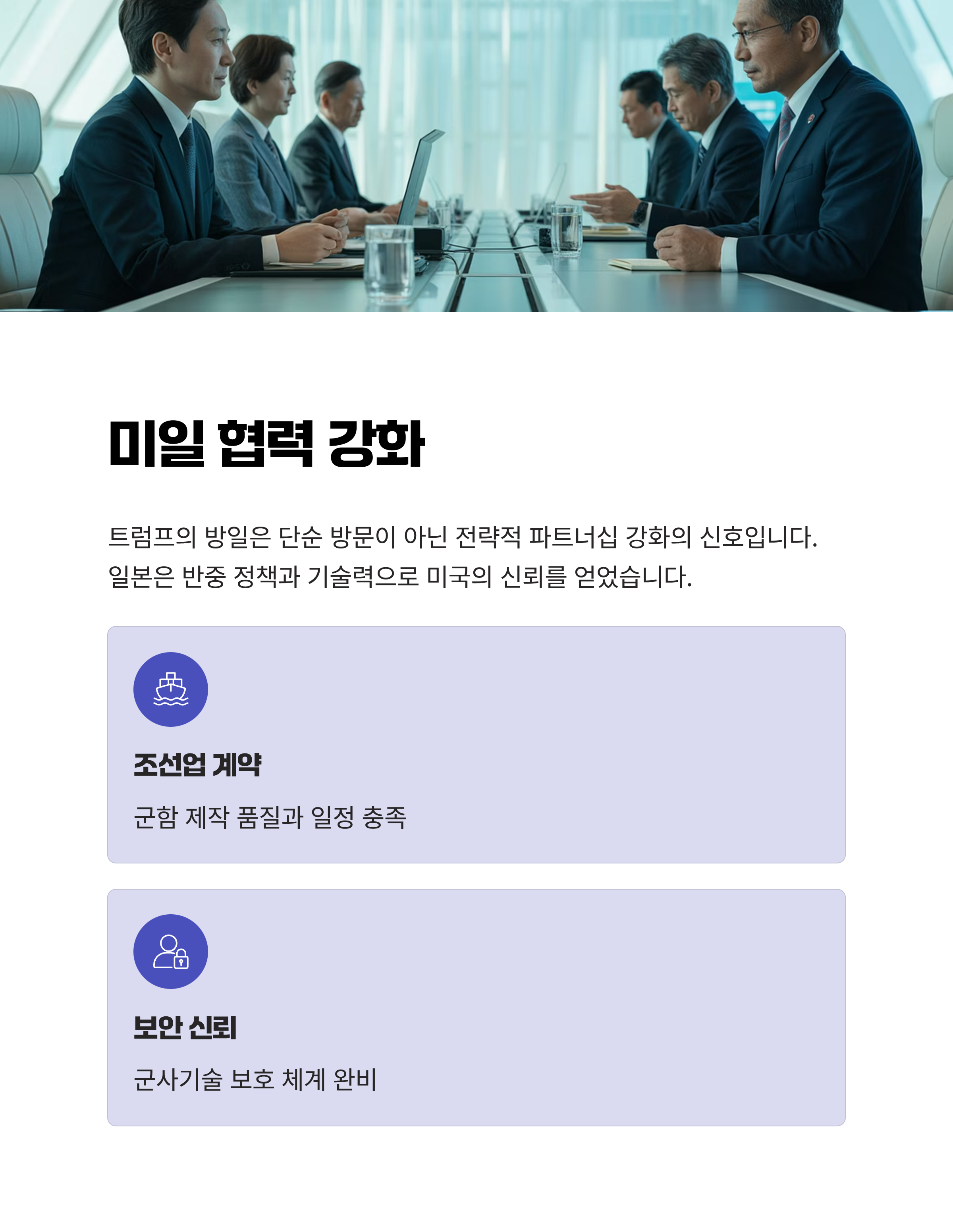 일본은 오래전부터 미국과의 군사 및 경제 파트너십 강화를 통해 조선업 기술을 획기적으로 발전시켜왔습니다. 특히 미 해군과 협력한 최신 세빙선과 함정 제작 기술은 세계적으로 인정받고 있습니다. 반면 한국 조선업은 상용 선박에서 강점을 보이지만 상대적으로 군사적 함정 제작에서는 미국의 신뢰를 잃게 된 면이 없지 않습니다. 이 차이는 단순히 기술 수준의 문제가 아닌 외교적 신뢰와 경제 구조에서 나오는 차별화로 이어지고 있습니다.