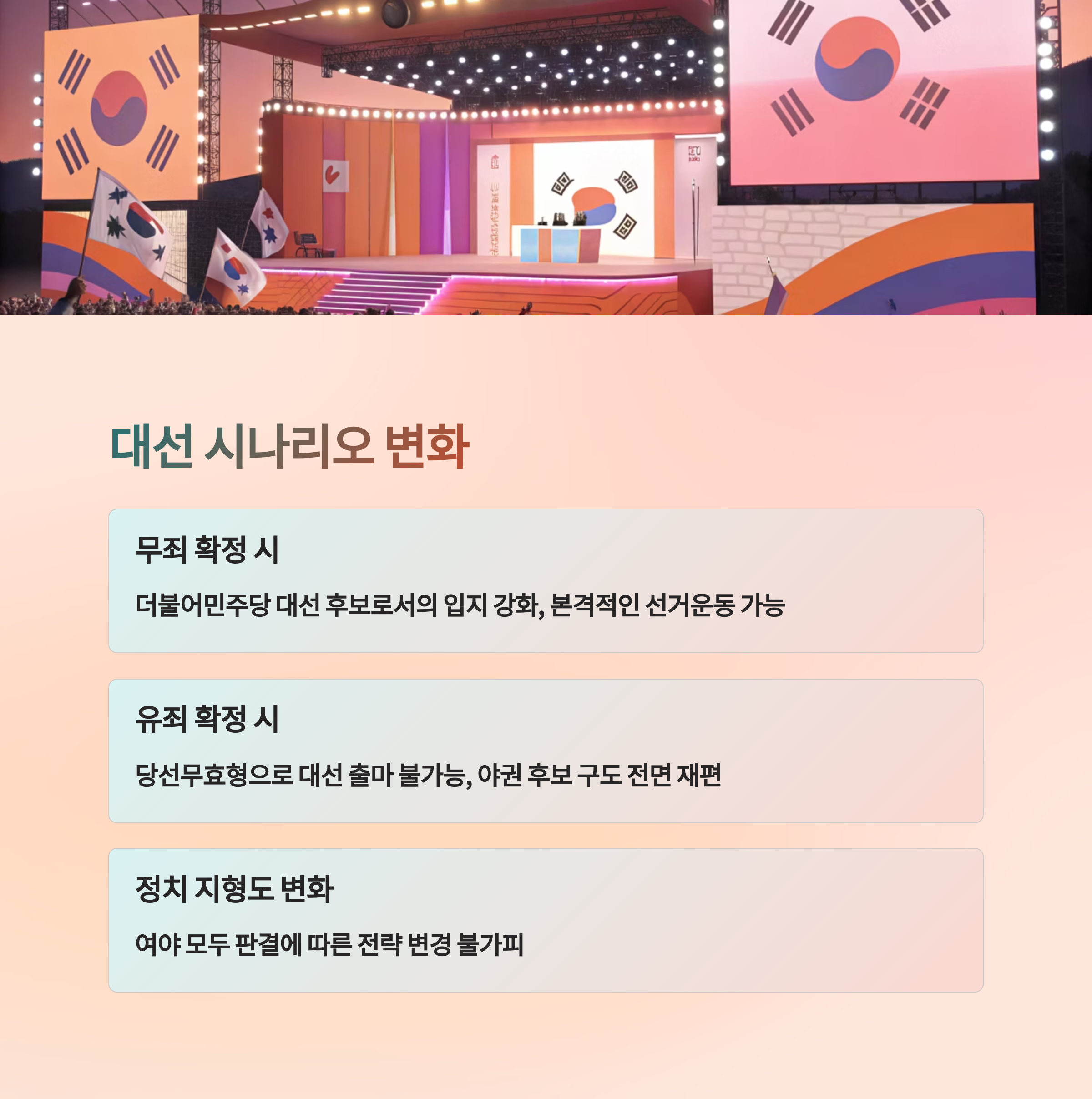 - 선거법 재판의 신속한 절차와 정치적 고려 가능성이 제기됨