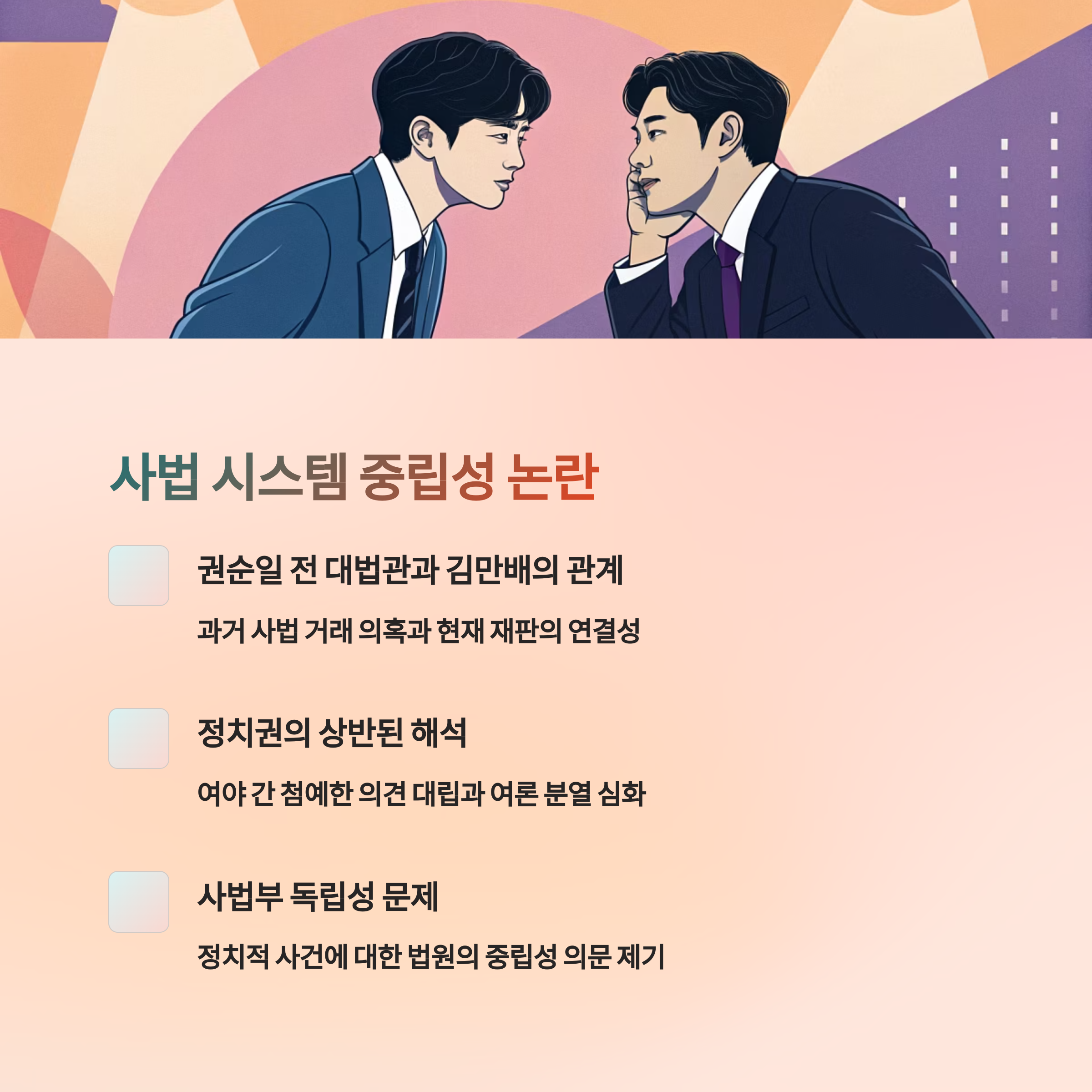 - 권순일 전 대법관과 김만배의 연결 고리를 통해 사법 시스템의 중립성 논란 부상