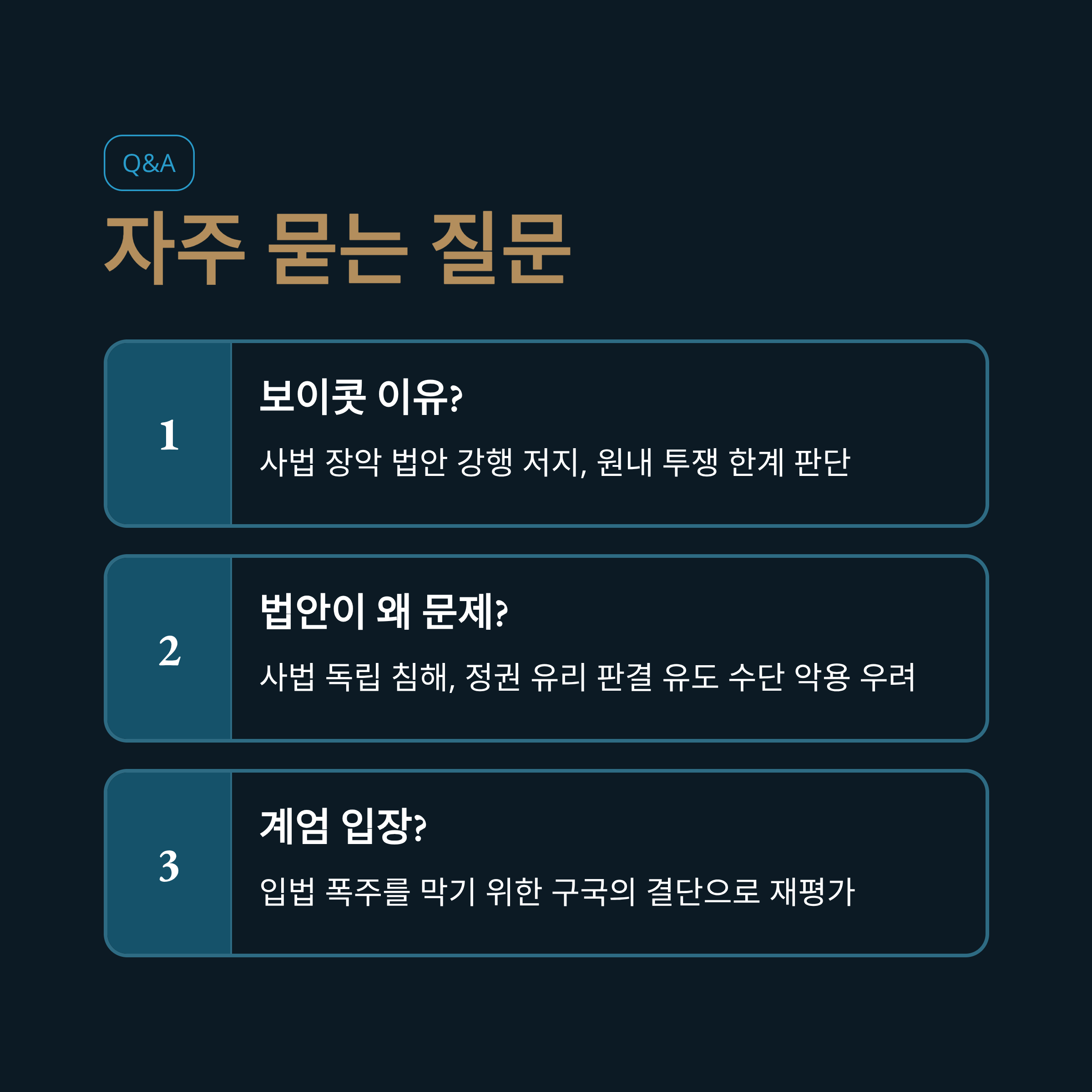 - 5. Q&A: 보이콧 배경, 사법 농단 내용, 윤석열 전 대통령 계엄에 대한 시각