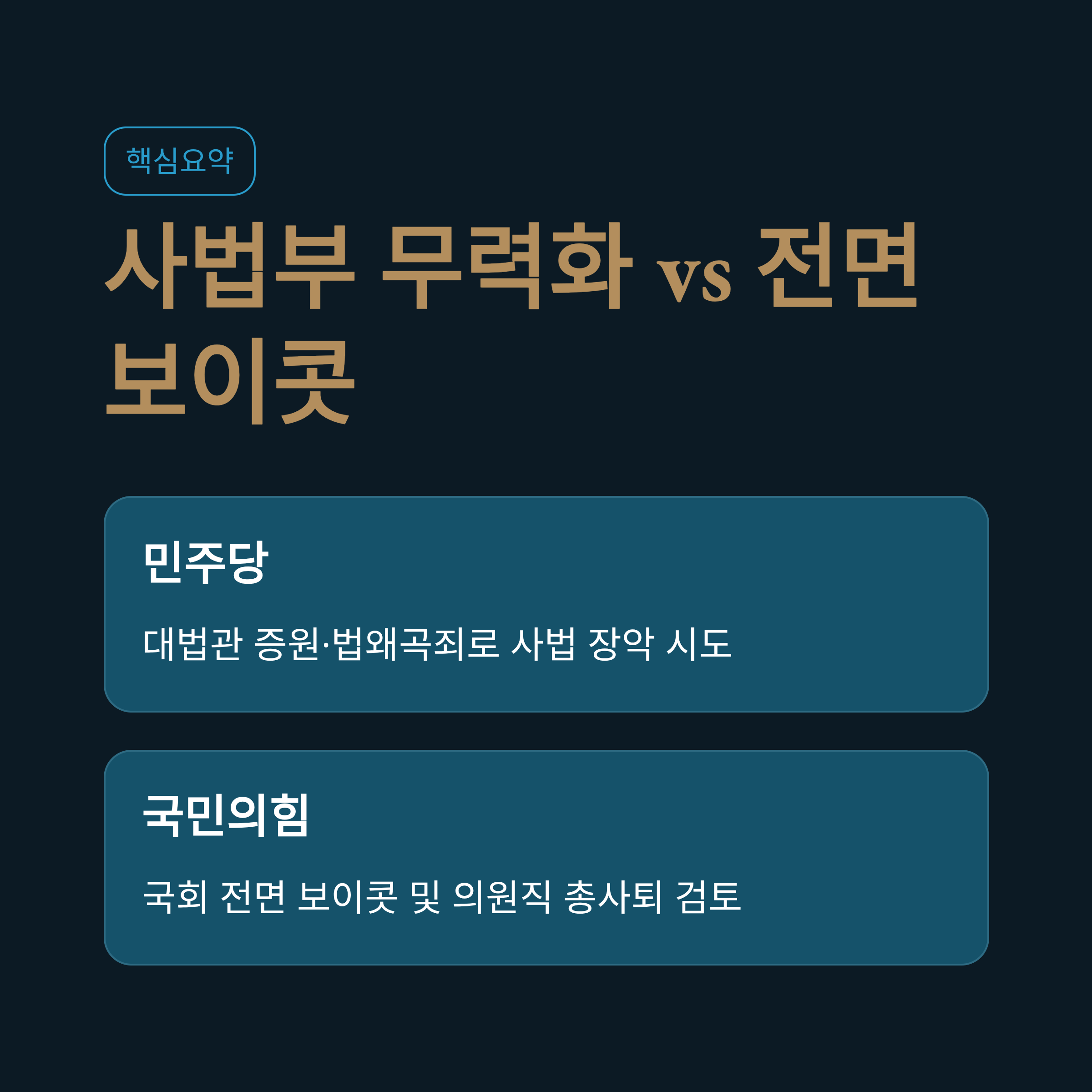 - 2. 핵심요약: 사법부 무력화 시도와 국민의힘의 전면 보이콧 및 사퇴 검토