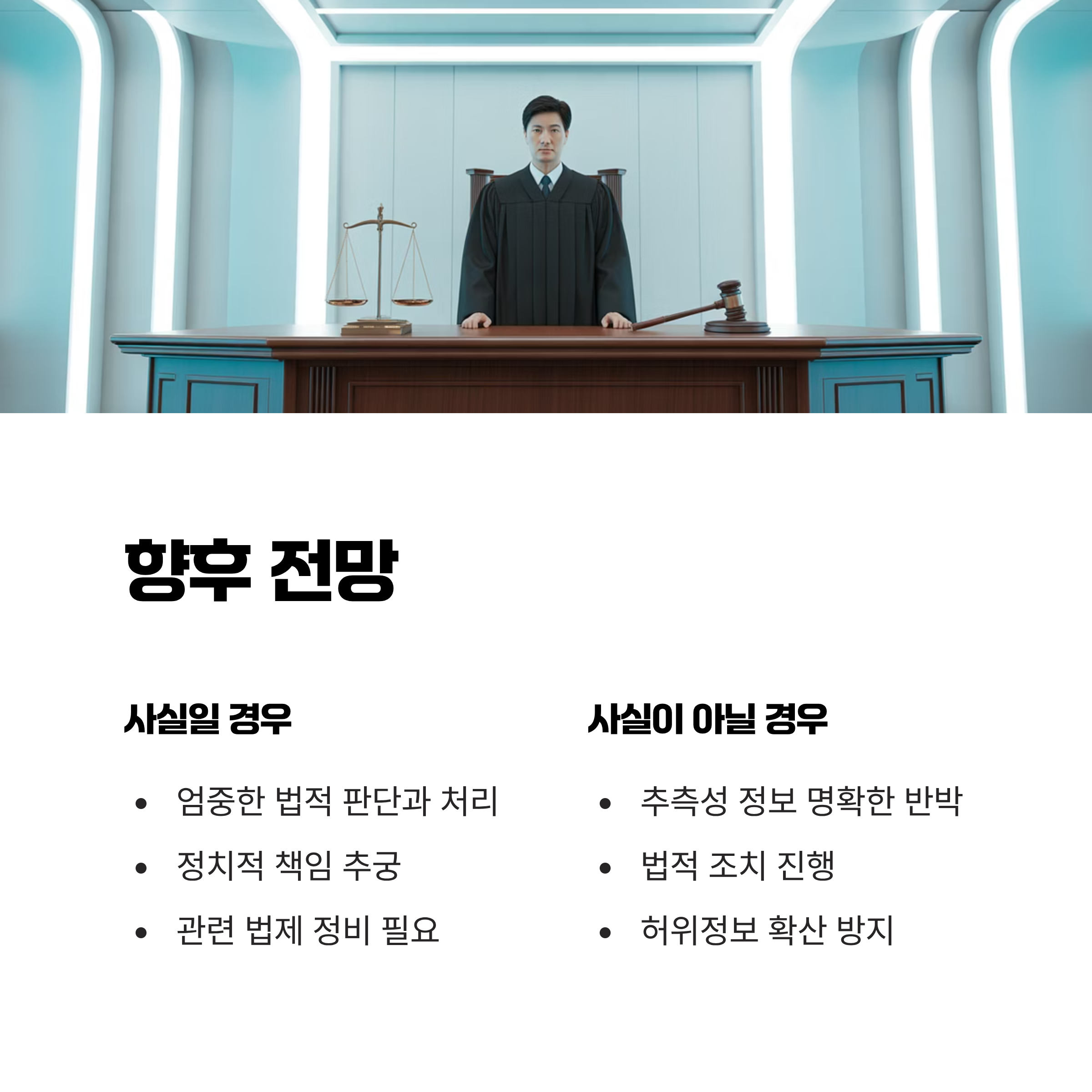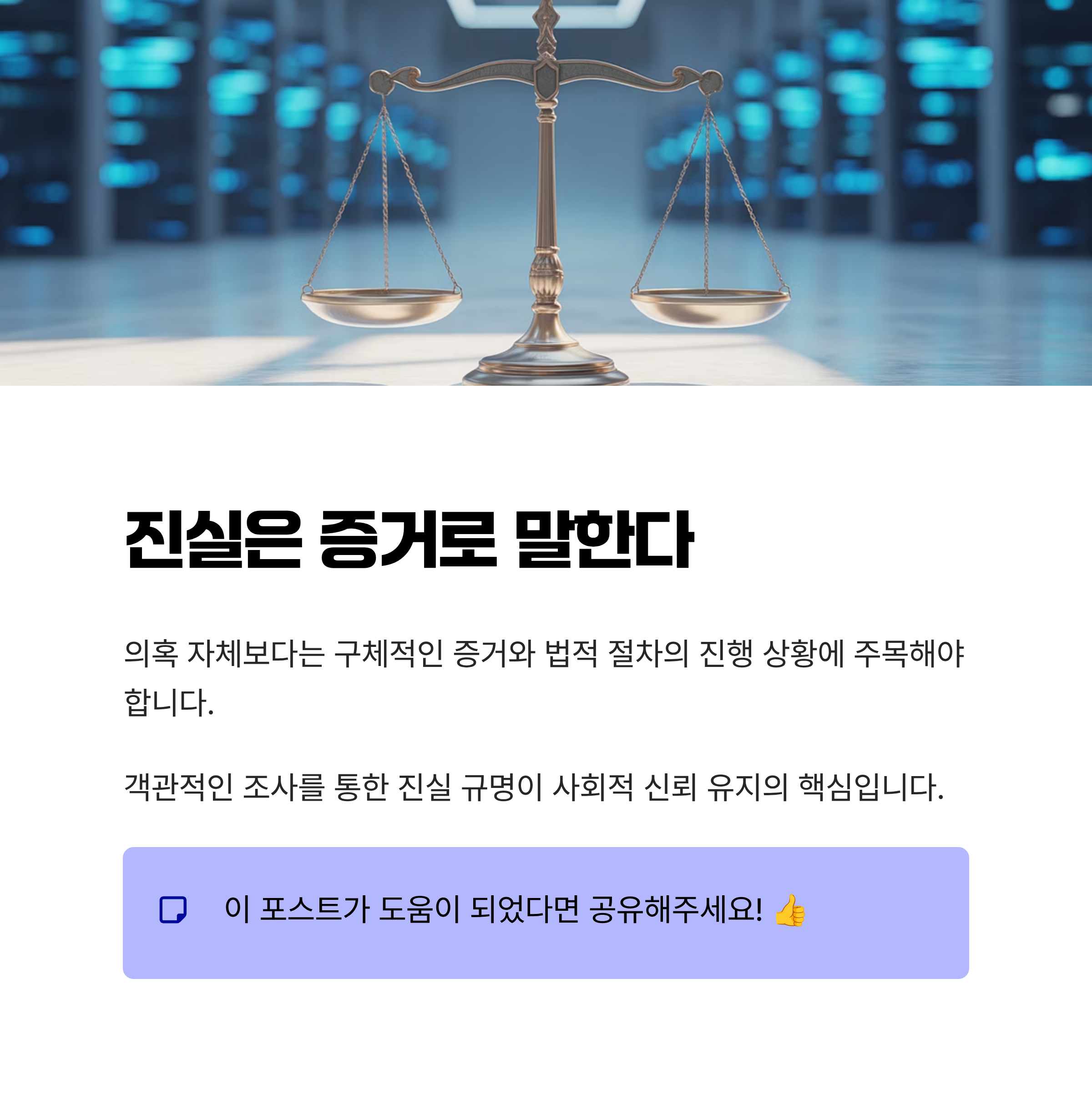 이를 위해 독자들은 의혹 자체보다는 구체적인 증거나 법적 절차의 진행 상황에 주목할 필요가 있습니다. 이는 진실 규명뿐 아니라 사회적 신뢰를 유지하는 데 핵심적인 역할을 할 것입니다.
