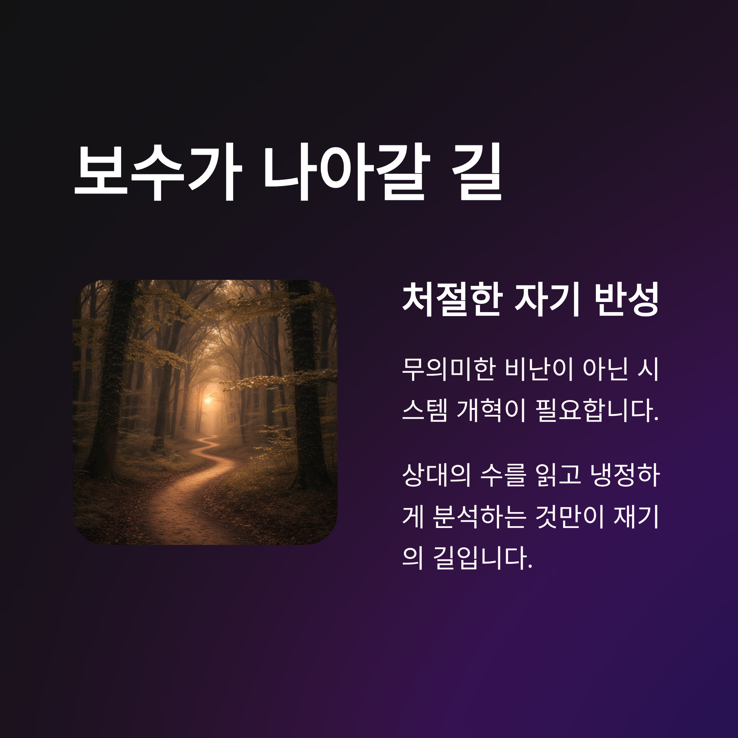 - 결론: 패배를 인정하고 승자의 전략을 연구해야 할 보수의 과제