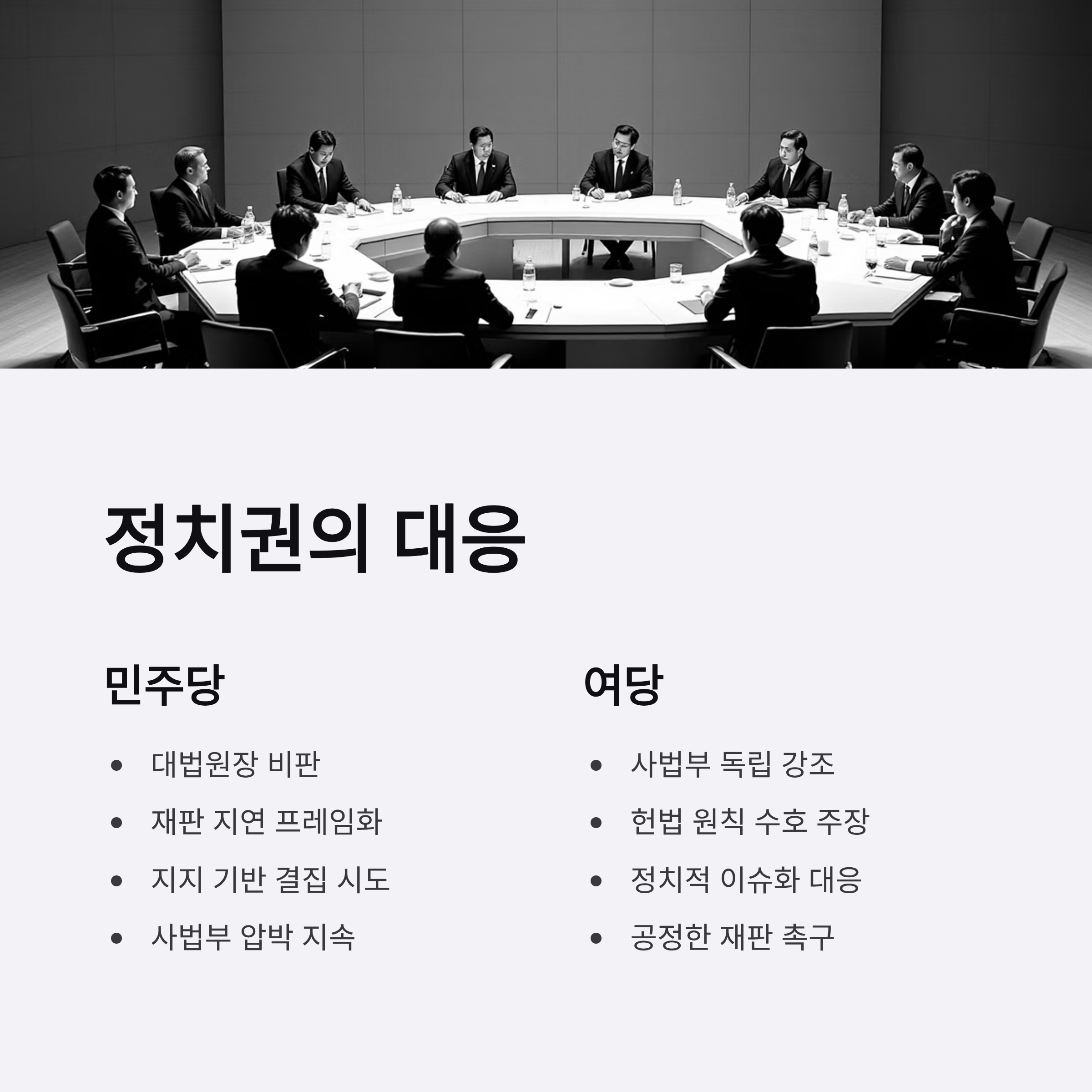 5. 사법부와 민주당 간 갈등이 장기화될 경우, 국내 정치경제 분위기에도 영향을 미칠 수 있습니다.