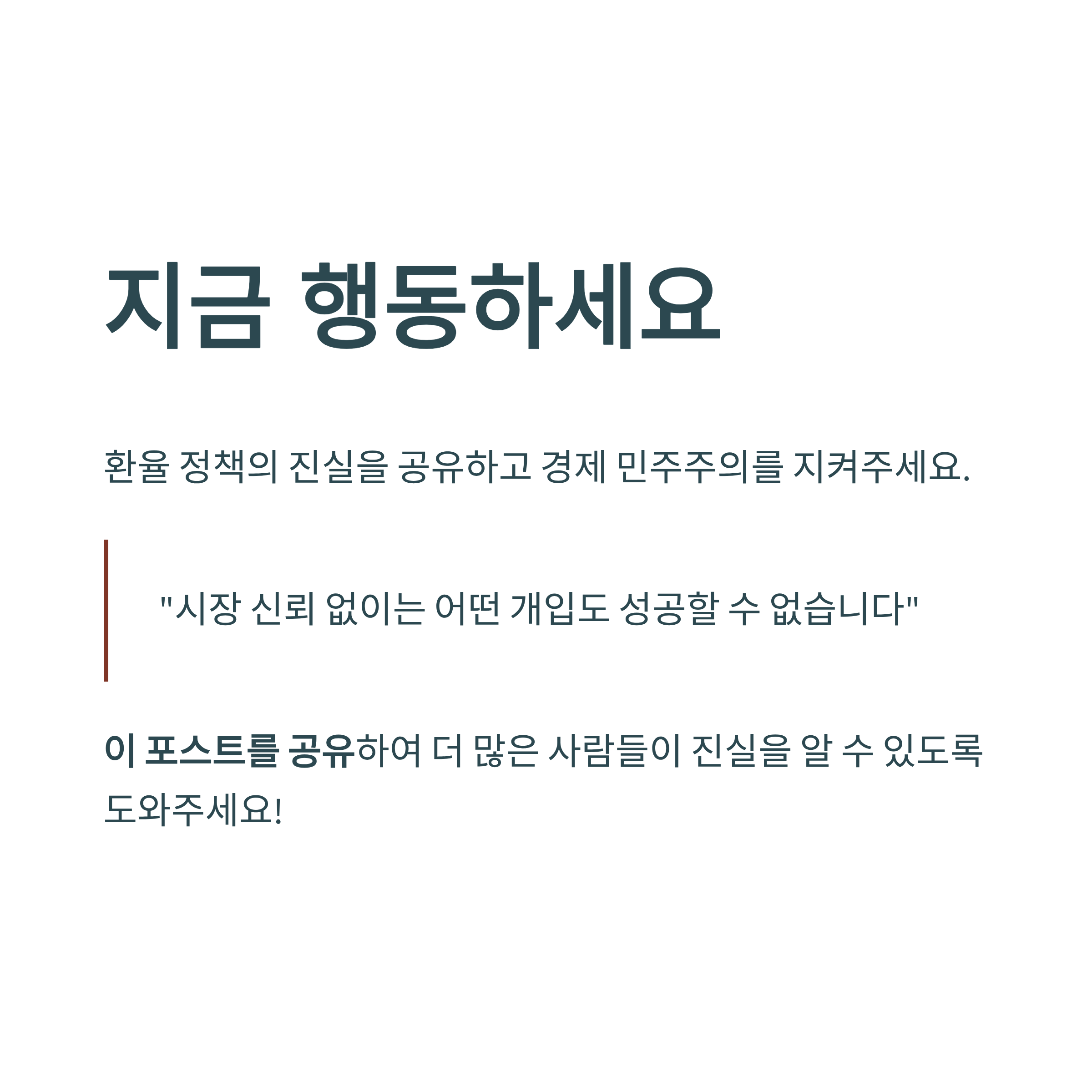 정부의 구두발 개입은 단기적 환율 하락을 가져오며 일정 부분 효과를 보였으나, 근본적인 구조적 문제 해결에는 미치지 못하고 있다. 세계 경제와 긴밀히 맞물린 외환시장에서 인위적 개입은 한국 경제의 중장기적 신뢰와 투명성을 해칠 수 있다.