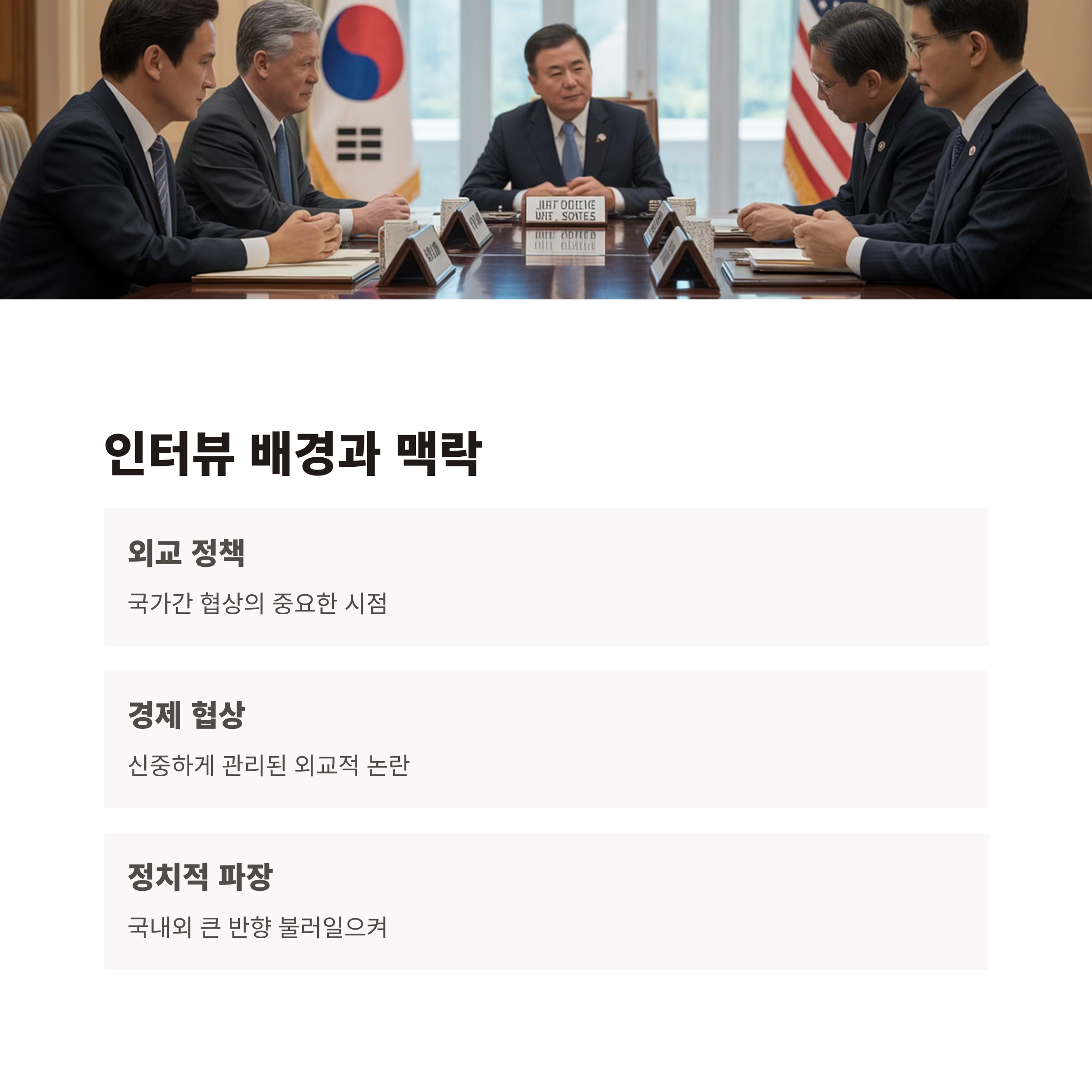 1. 이재명 대통령의 타임지 인터뷰는 과거 트럼프 정부와의 관세 협상 실패를 간접적으로 시인하는 분수령이 되었습니다.