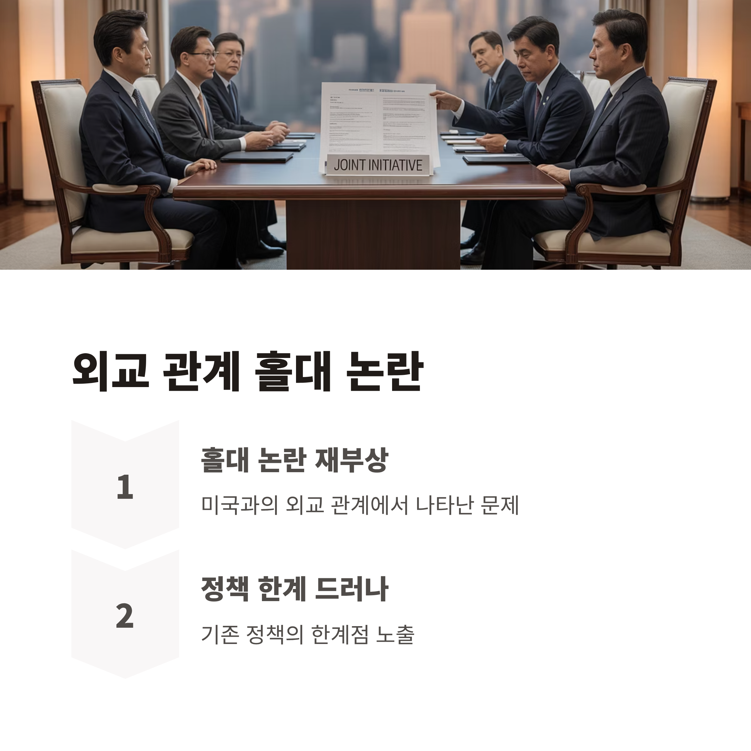 3. 미국과의 외교 관계에서 나왔던 홀대 논란이 다시 부상하며 기존 정책의 한계를 드러내게 되었습니다.