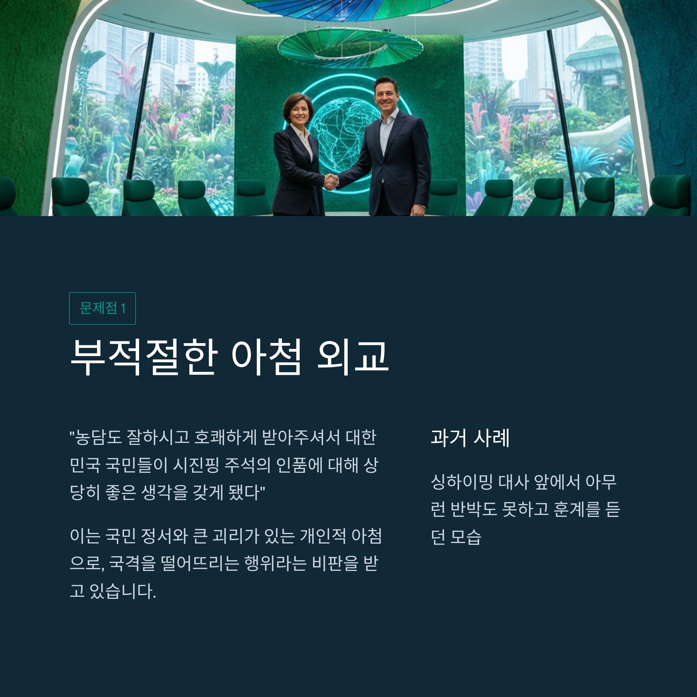 - 분석: 시진핑 칭송, 하나의 중국 지지, 굴욕 외교 우려