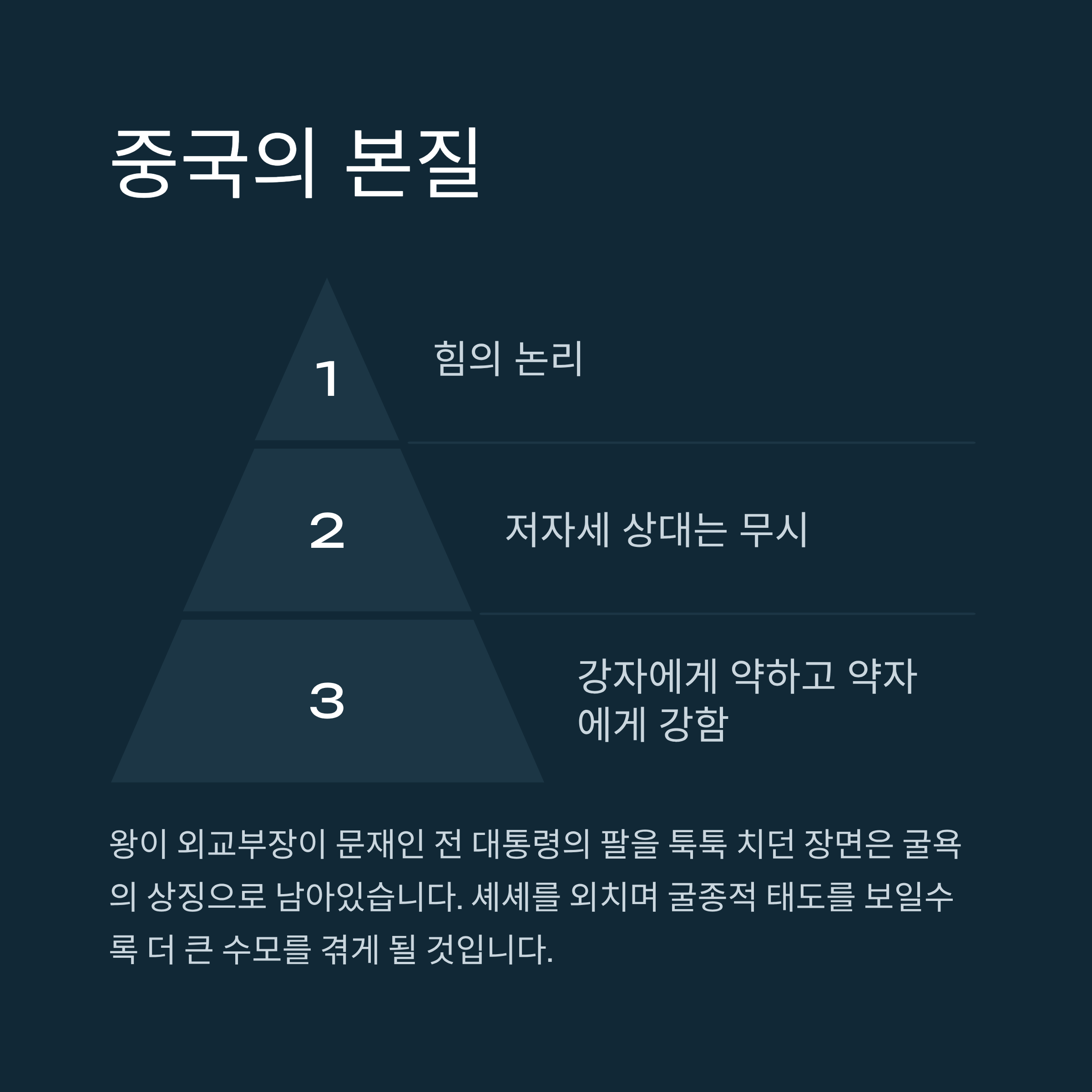 3. 굴욕적 '혼밥 외교'의 재현, 강자에게 약한 중국의 본질