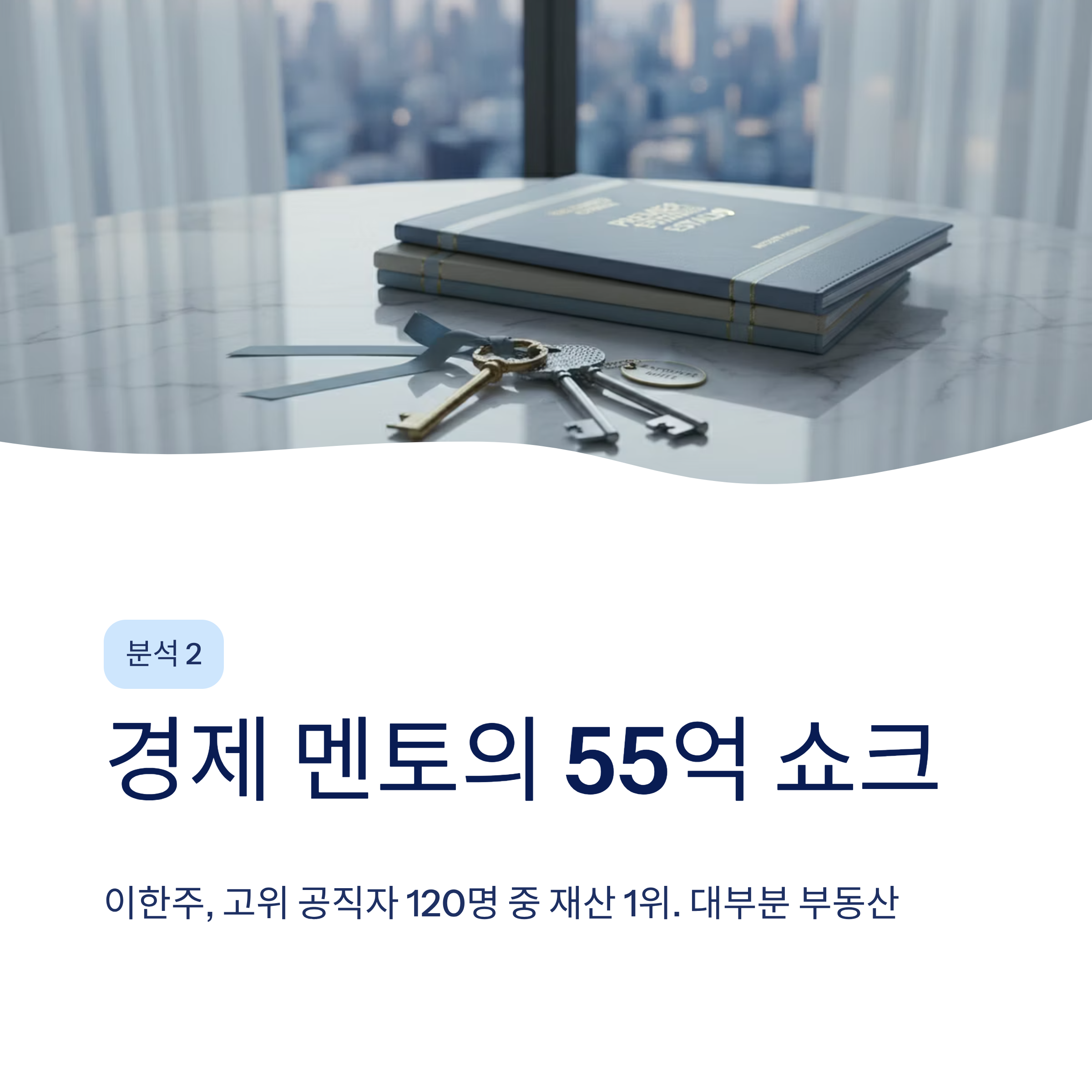 경제 멘토의 언행 불일치: '강남 아파트 위험 자산' 발언과 달리 이한주 전 원장은 청담동 아파트 포함 55억 원 상당의 부동산을 보유한 사실이 드러나 국민적 공분을 사고 있습니다.