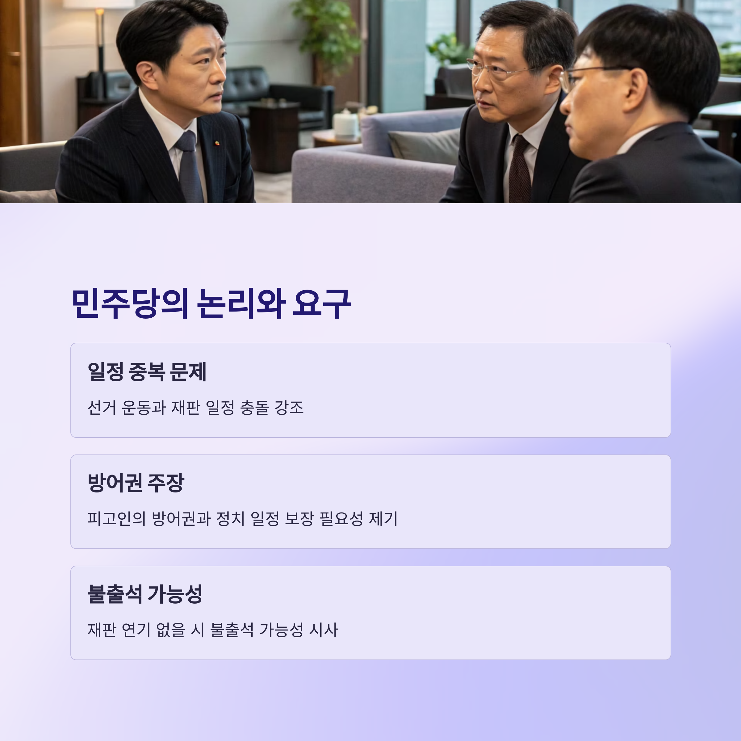 과연 민주당의 재판 연기 요구는 피고인의 권리를 위한 정당한 요청일까요? 아니면 정치적 목적을 위한 사법 방해일까요?